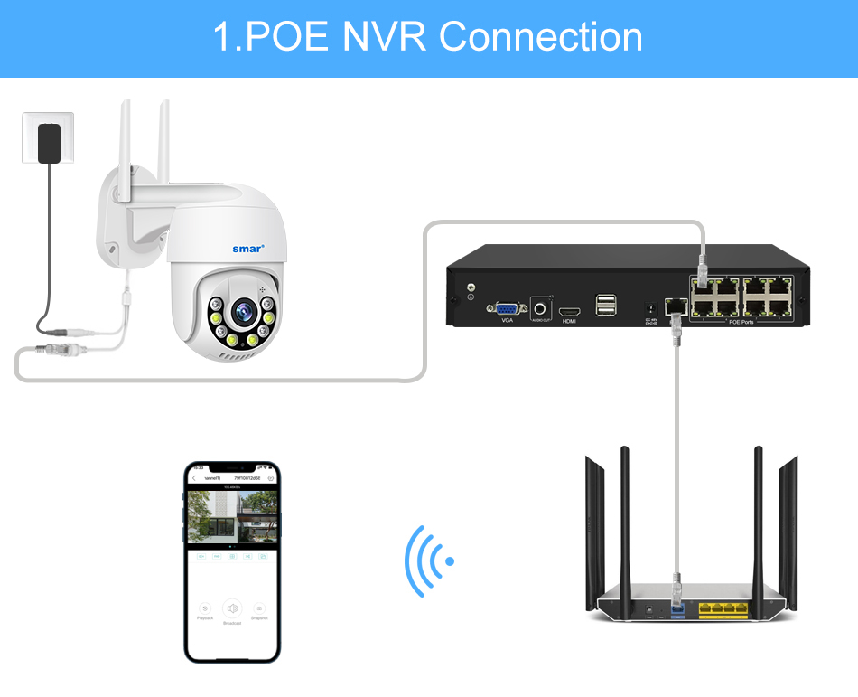 Вы можете выбрать удобное соединение по желанию. Иногда у вас может быть только один способ подключения камеры, не волнуйтесь, эта камера поддерживает беспроводное и проводное соединение одновременно.