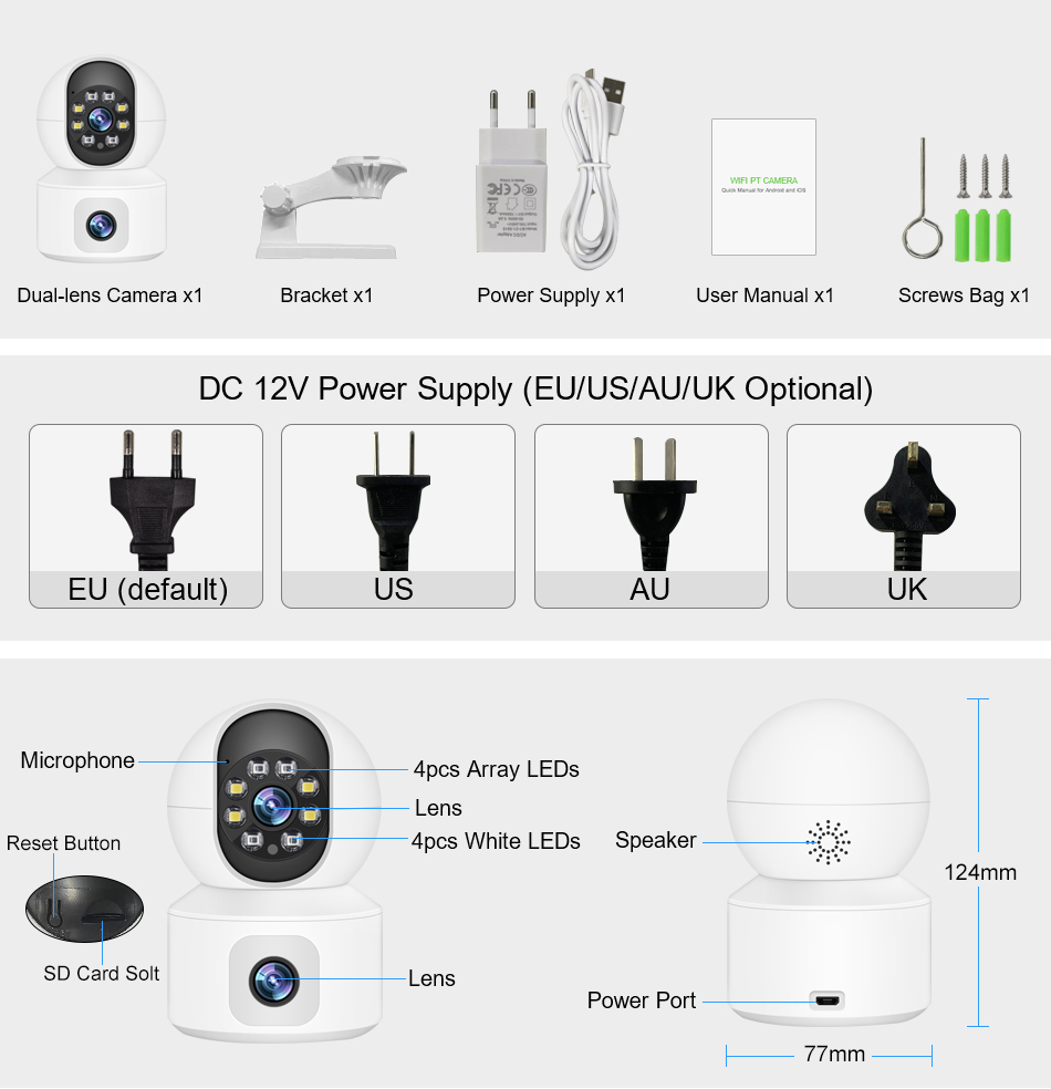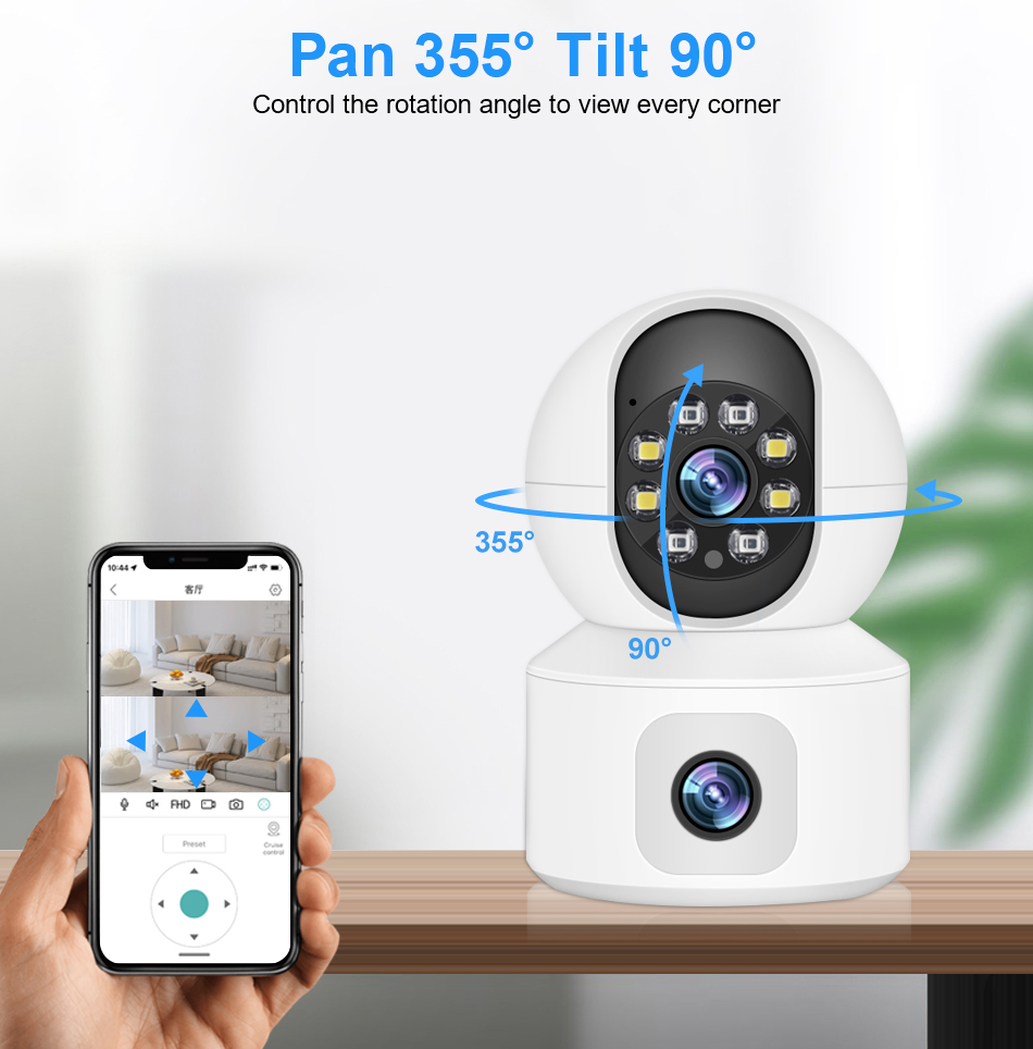 Благодаря горизонтальному 355 ° и вертикальному 90 ° вы можете удаленно управлять наружной камерой Wi-Fi, чтобы просматривать каждый угол с помощью мобильного телефона.