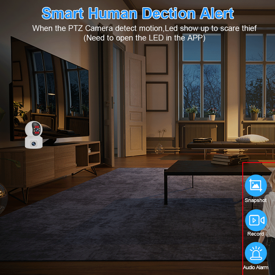 Быстро находит человеческие цели и немедленно отправляет уведомления приложения на ваш телефон, чтобы вы могли видеть, что происходит где угодно.