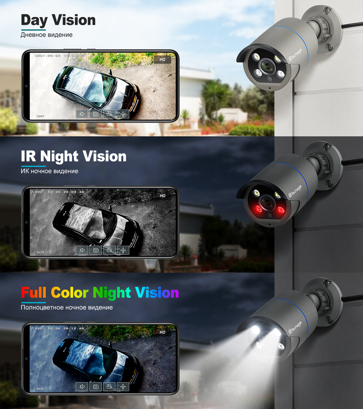 Вы можете выбрать три ночных режима. (Дневное видение, ночное видение, полноцветное ночное видение)