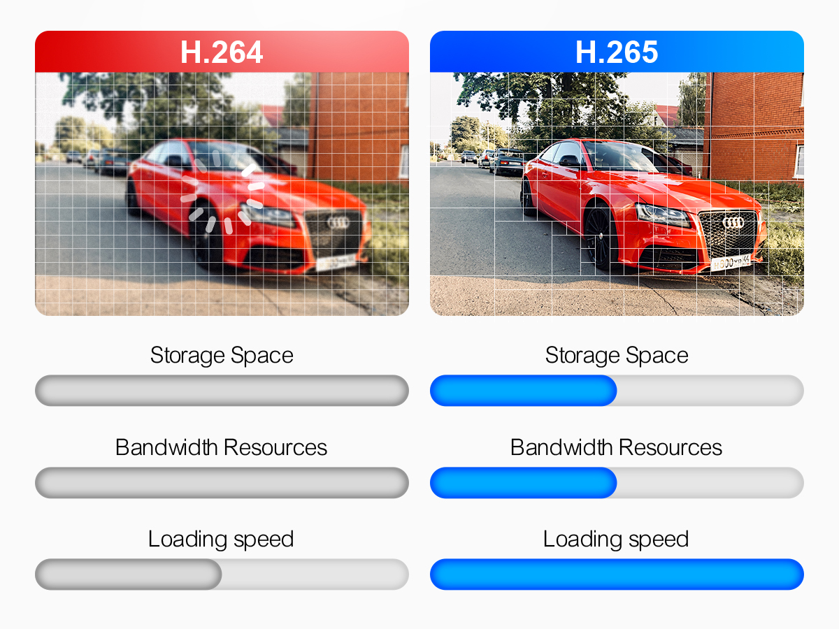 H.265 Более четкое разрешение HD обеспечивает лучшее качество изображения при более низкой скорости передачи данных.
