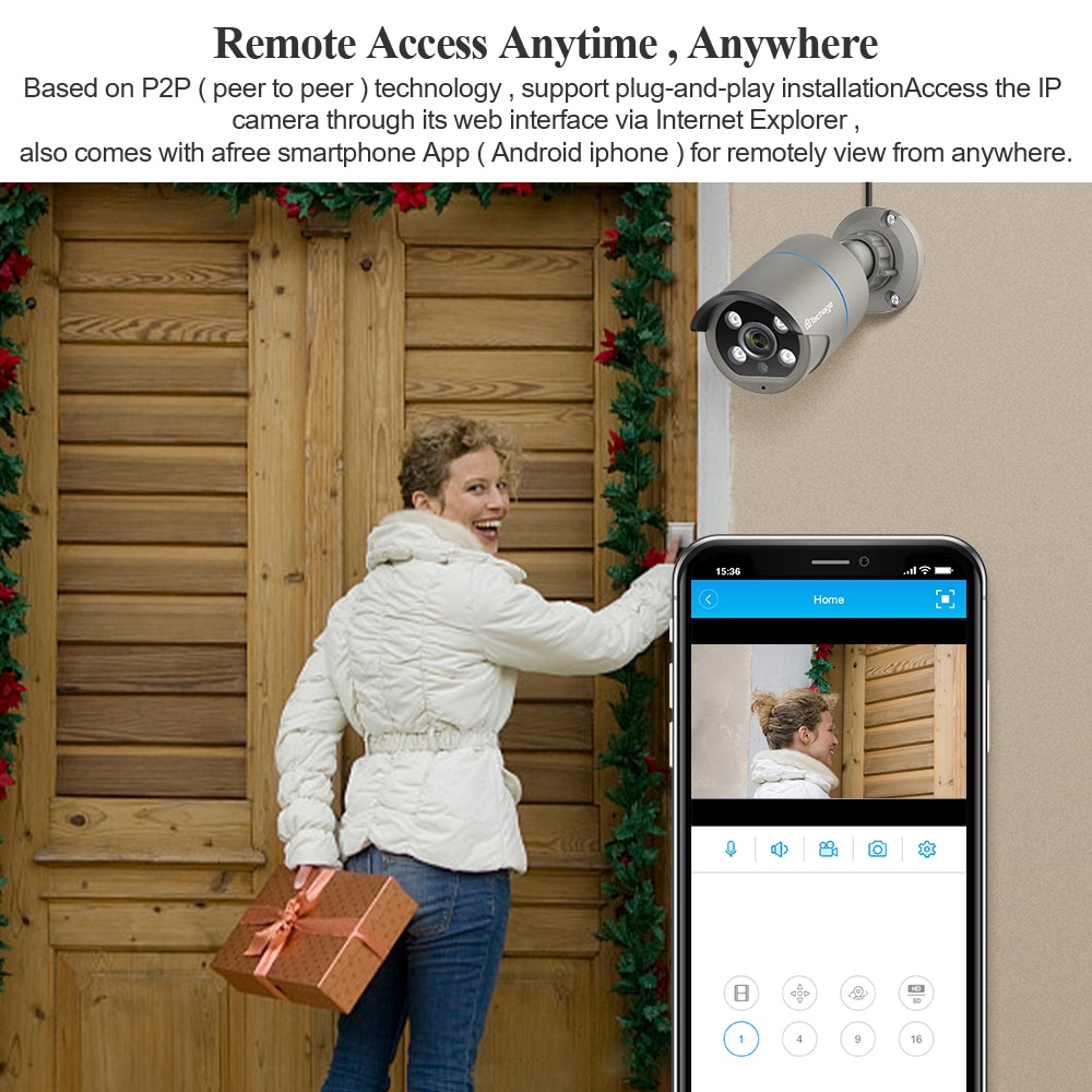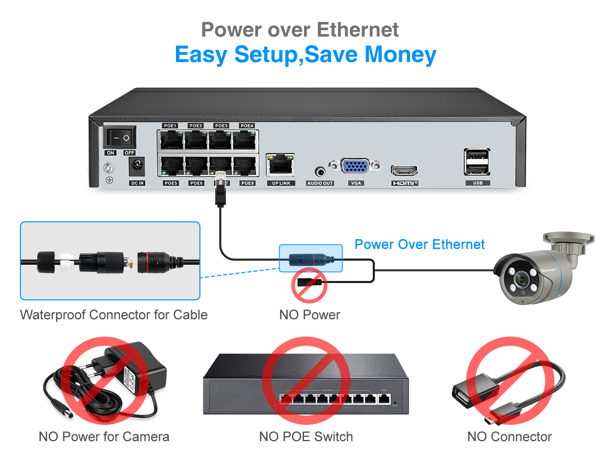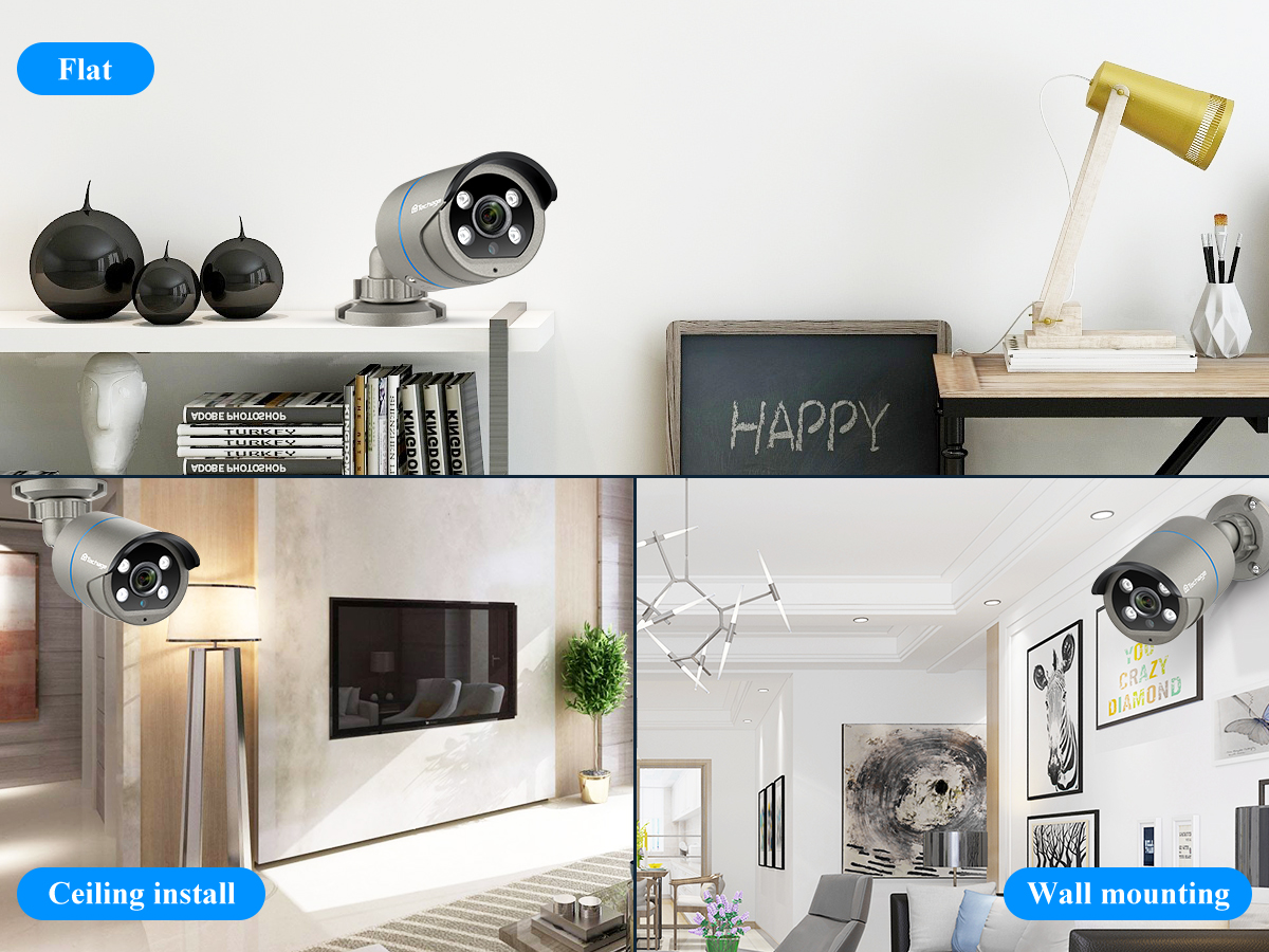 4-мегапиксельная камера POE: IP-камера 48 В POE, встроенный модуль PoE стандарта 802.3af, он может работать с инжектором PoE 48 В или 48 В POE NVR, стандартом 802.3af