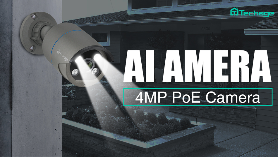 IP-камера Techage HD 4 МП AI POE, двухстороннее аудио, ИК ночное видение, водонепроницаемая уличная камера видеонаблюдения, комплект видеорегистратора камера уличная для дома