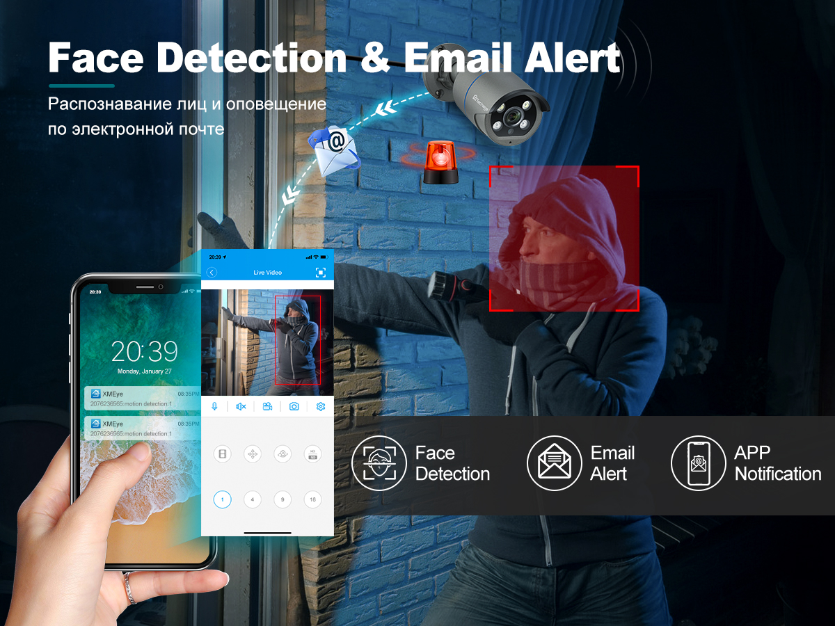 Когда кто-то врывается в зону съемки, камера обнаруживает лицо и записывает его. На этом этапе он также отправит предупреждение на ваш почтовый ящик.