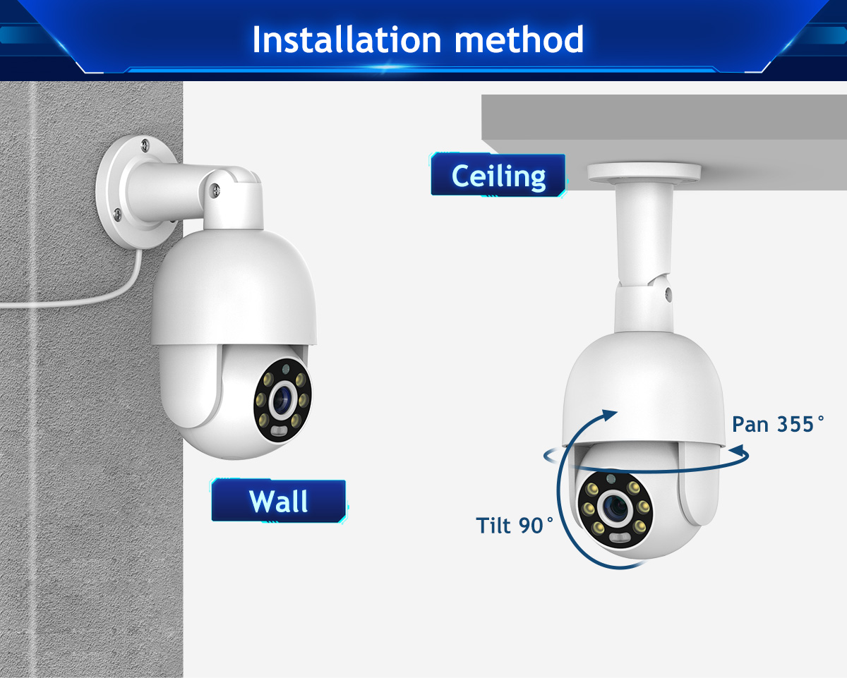 Поддержка камеры PoE 4MP/5MP Pan 355 °/наклон вращение на 90 °