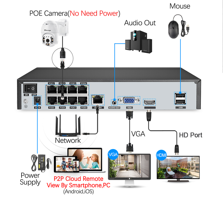 Сэкономьте деньги и удобно, POE NVR = переключатель NVR + POE