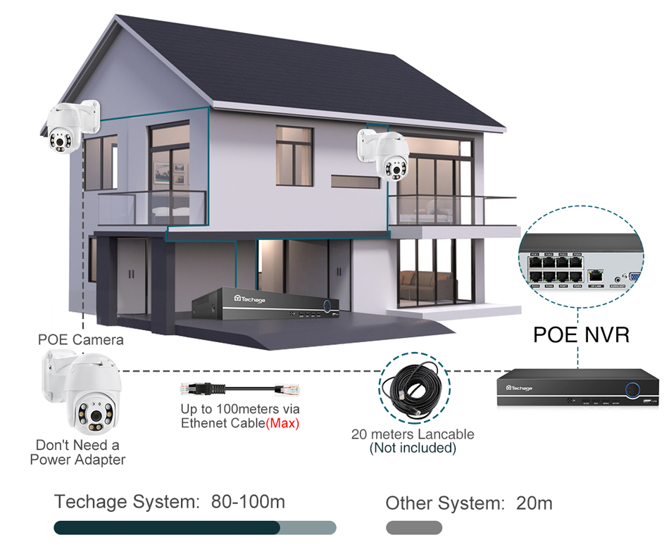 Камера POE AI (камера POE): Встроенный стандартный модуль POE 802.3af, он может работать с инжектором POE или POE NVR, стандартом 802.3af.