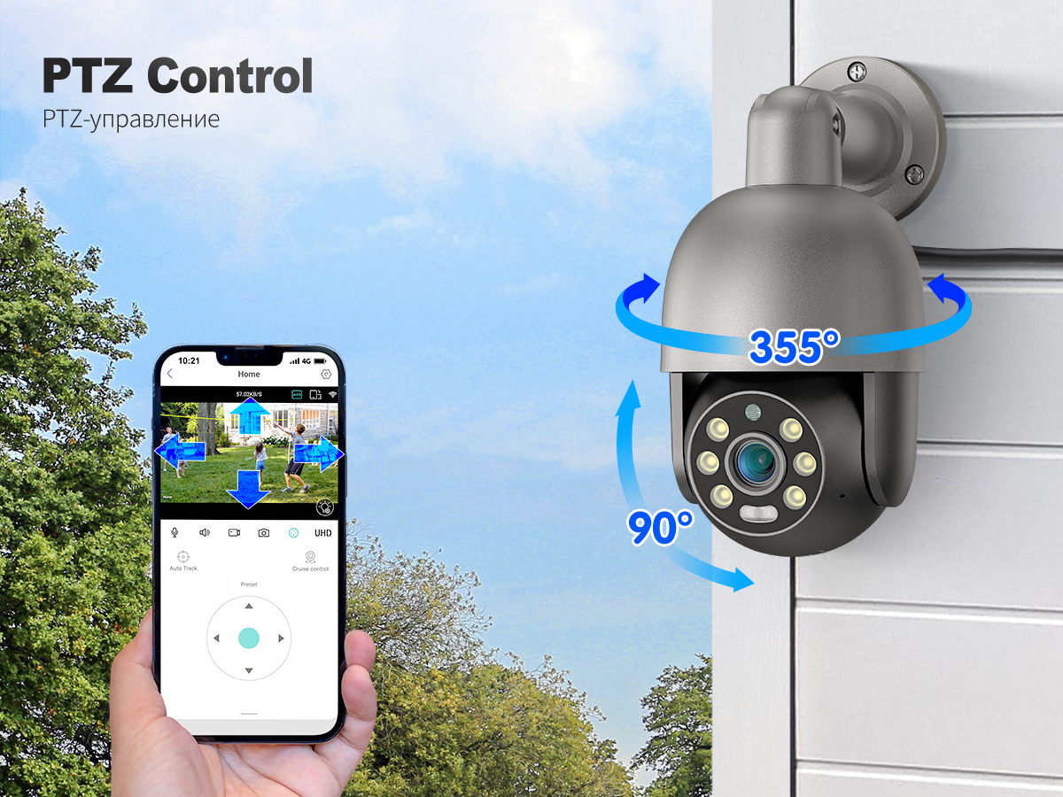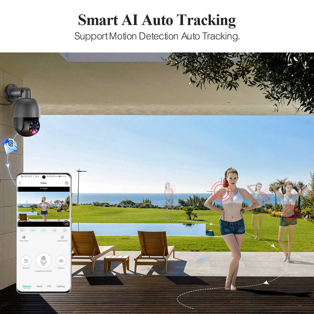 4-мегапиксельная/8-мегапиксельная камера POE AI: Поддержка дистанционного управления панорамирования 355 ° и наклона 90 ° через приложение