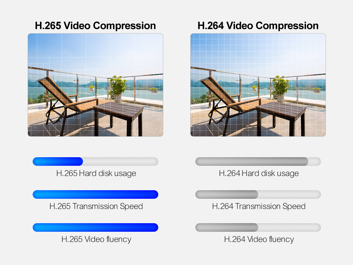 H.265 нужна только меньшая полоса пропускания, более быстрая скорость загрузки, более плавное воспроизведение видео.
