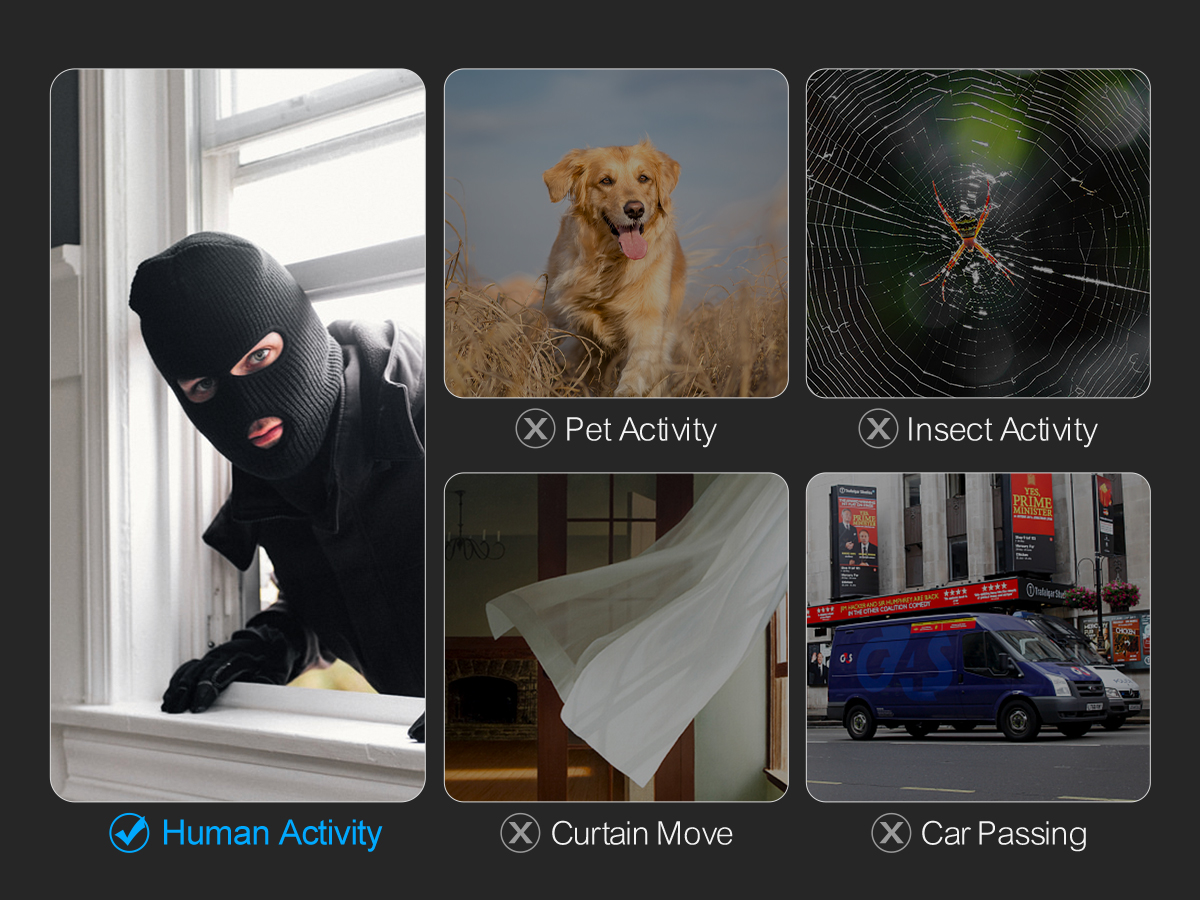 Только когда кто-то проходит зону сигнализации, камера отправляет тревожное сообщение, увеличивая точность сигнализации.
