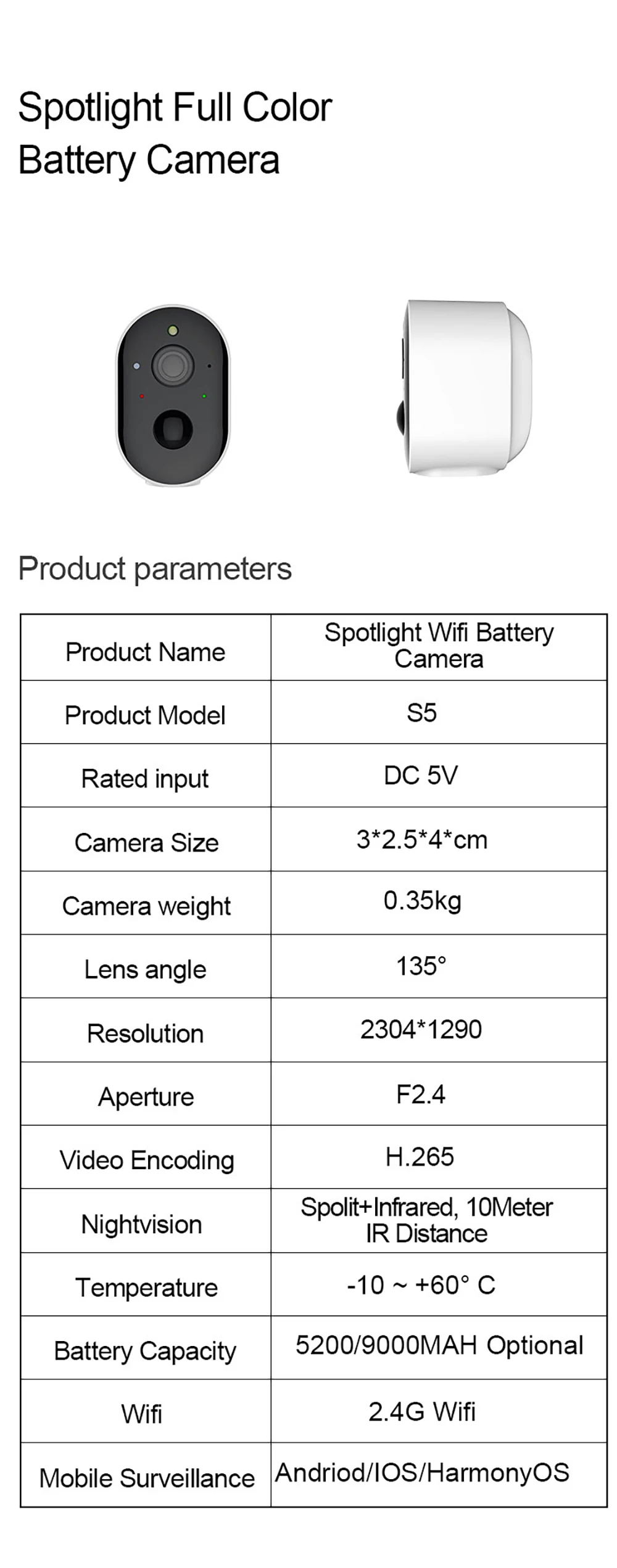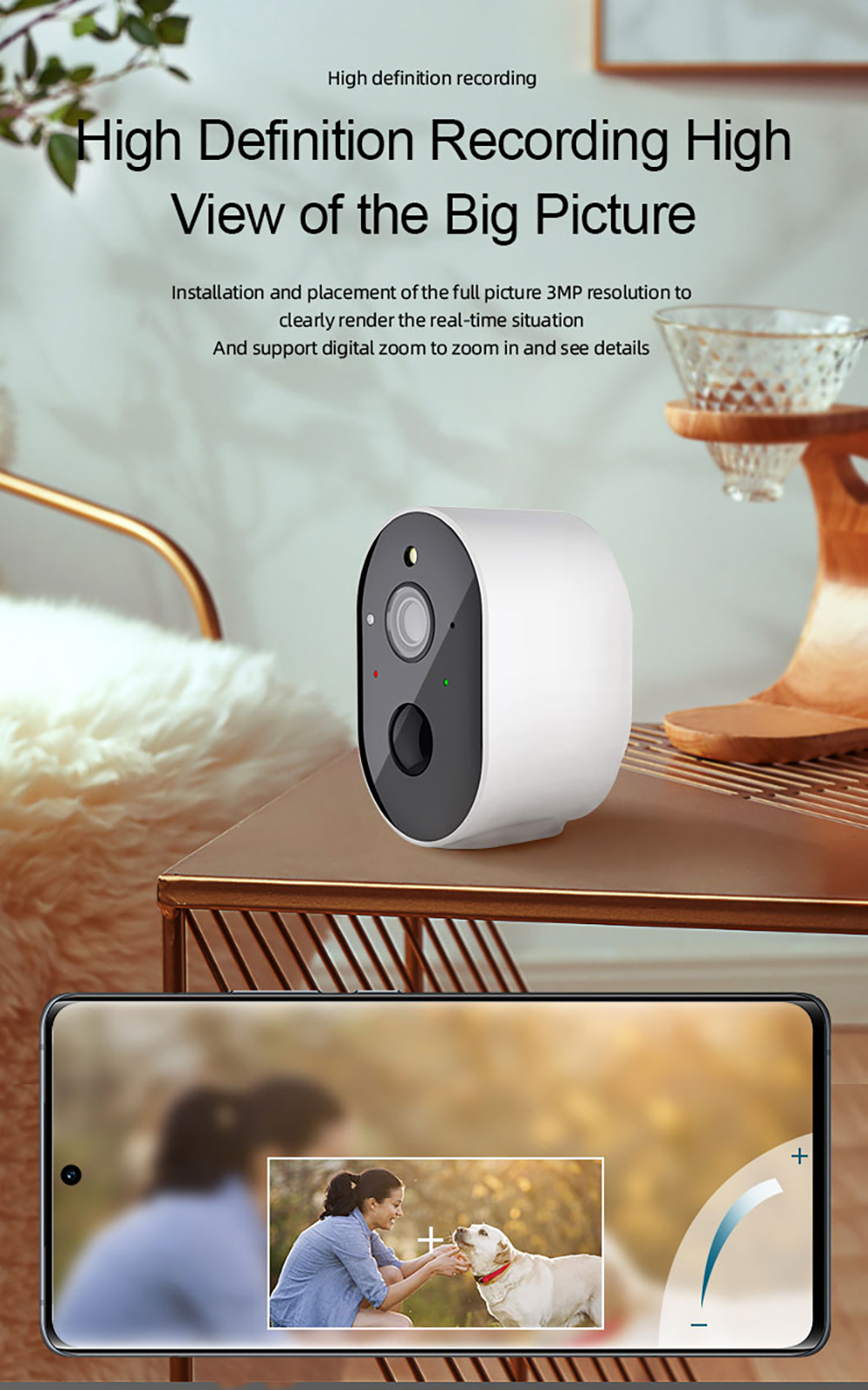 5-мегапиксельная точечная камера с аккумулятором Wi-Fi высокой четкости, Сверхширокий угол 130 °, делает ваше поле зрения шире и четче, а также поддерживает 5-кратный цифровой зум