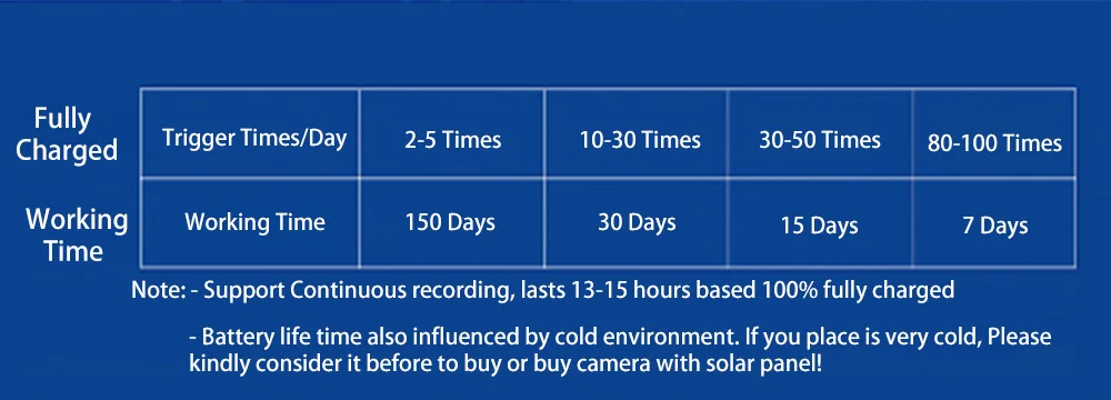 -Эта камера поддерживает непрерывную запись. Сначала вам нужно установить TF-карту марки C10. Когда вы выбираете режим непрерывной записи, заряда батареи хватает ТОЛЬКО на 15 часов при полной зарядке.