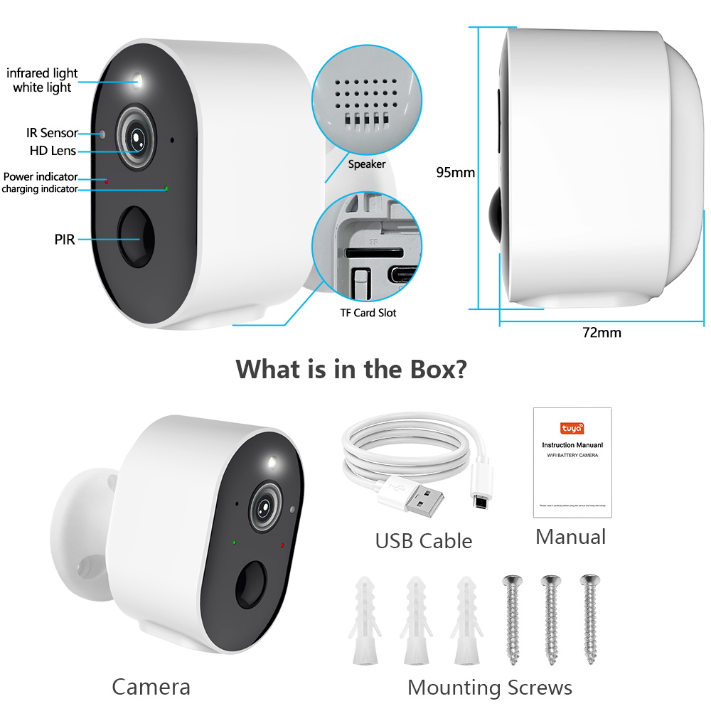 Наша аккумуляторная камера Tuya Поддерживает голосовую камеру Alexa Google, чтобы разбудить эту камеру.