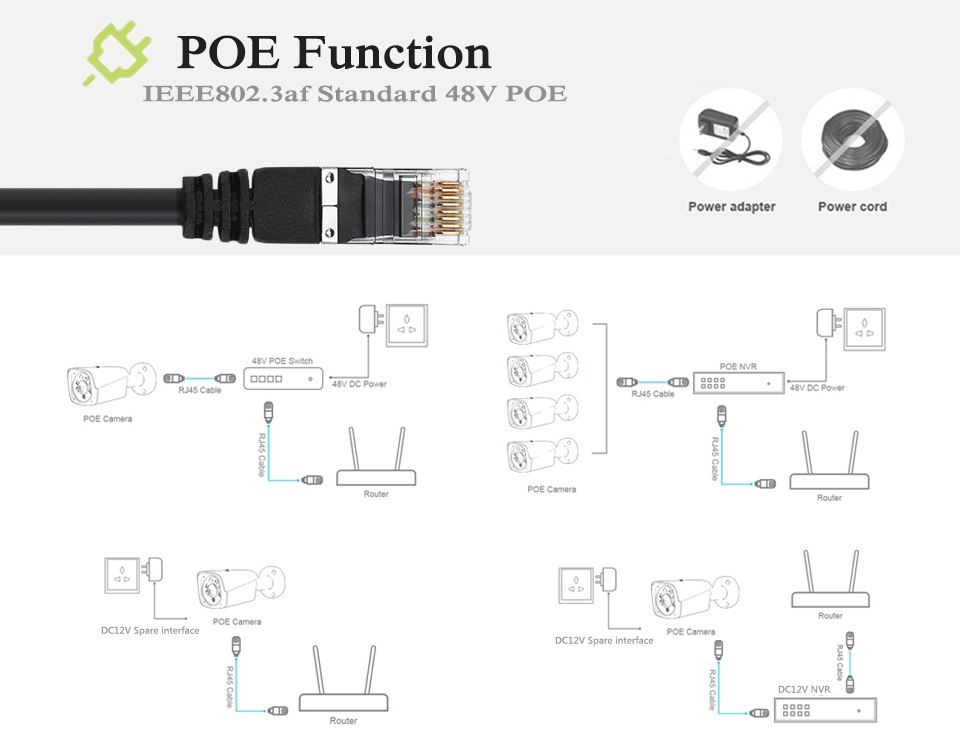 2: Подключите камеру к подключи и работай POE NVR 48V (адаптер питания не требуется)
