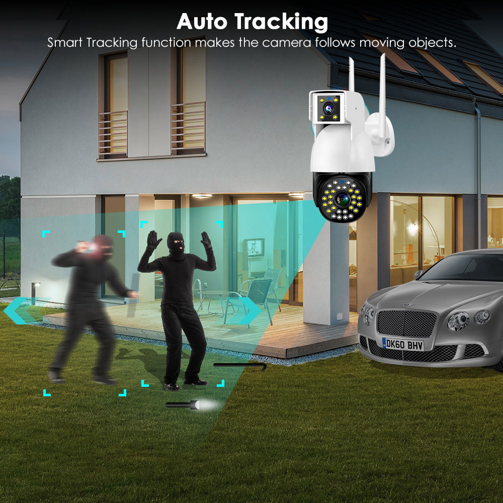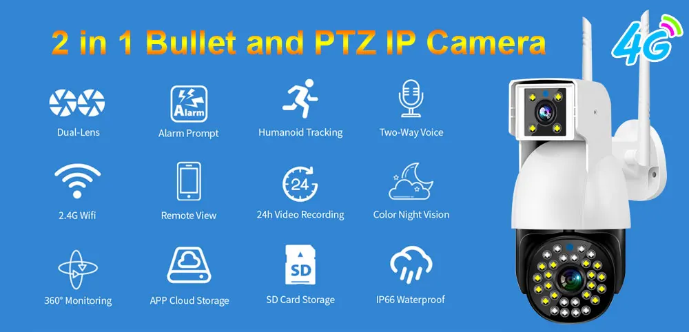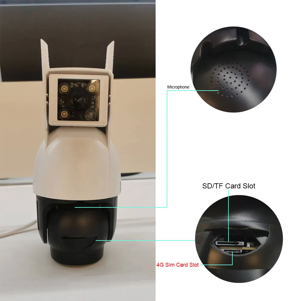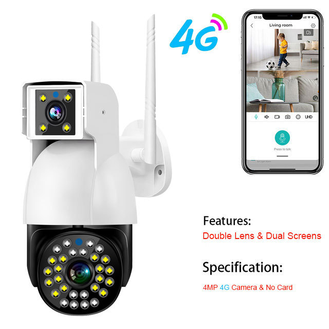 Двойной объектив с двойным экраном Автоматическое отслеживание PTZ 2,4 ГГц WIFI 4G камера