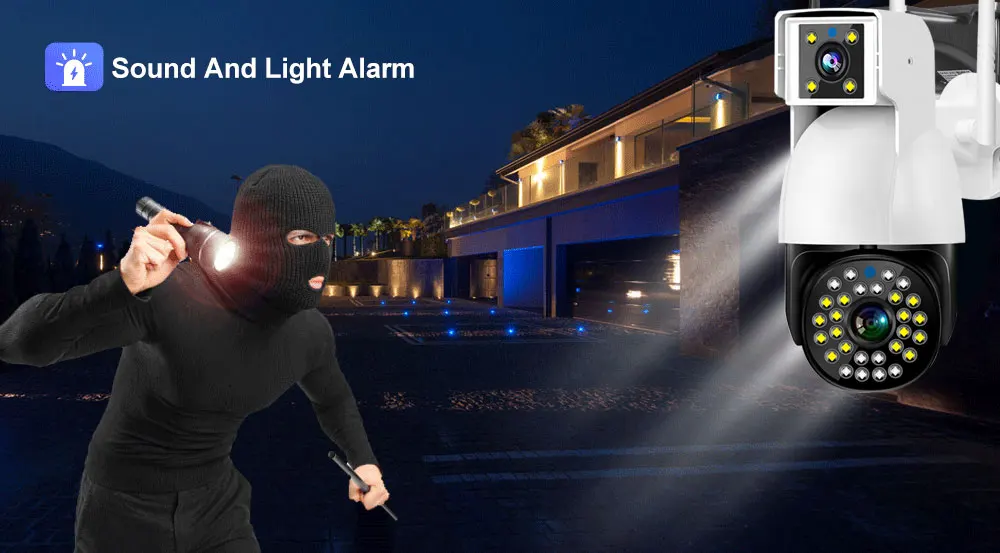 * Когда камера видеонаблюдения 2K обнаруживает движение, светодиод отображается, чтобы напугать вора.