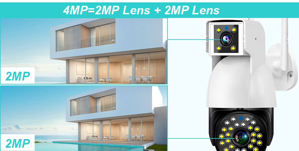 -Двойной объектив с двумя датчиками, двойной экран, широкоугольный обзор + Просмотр на большом расстоянии для достижения четкого мониторинга издалека и вблизи;