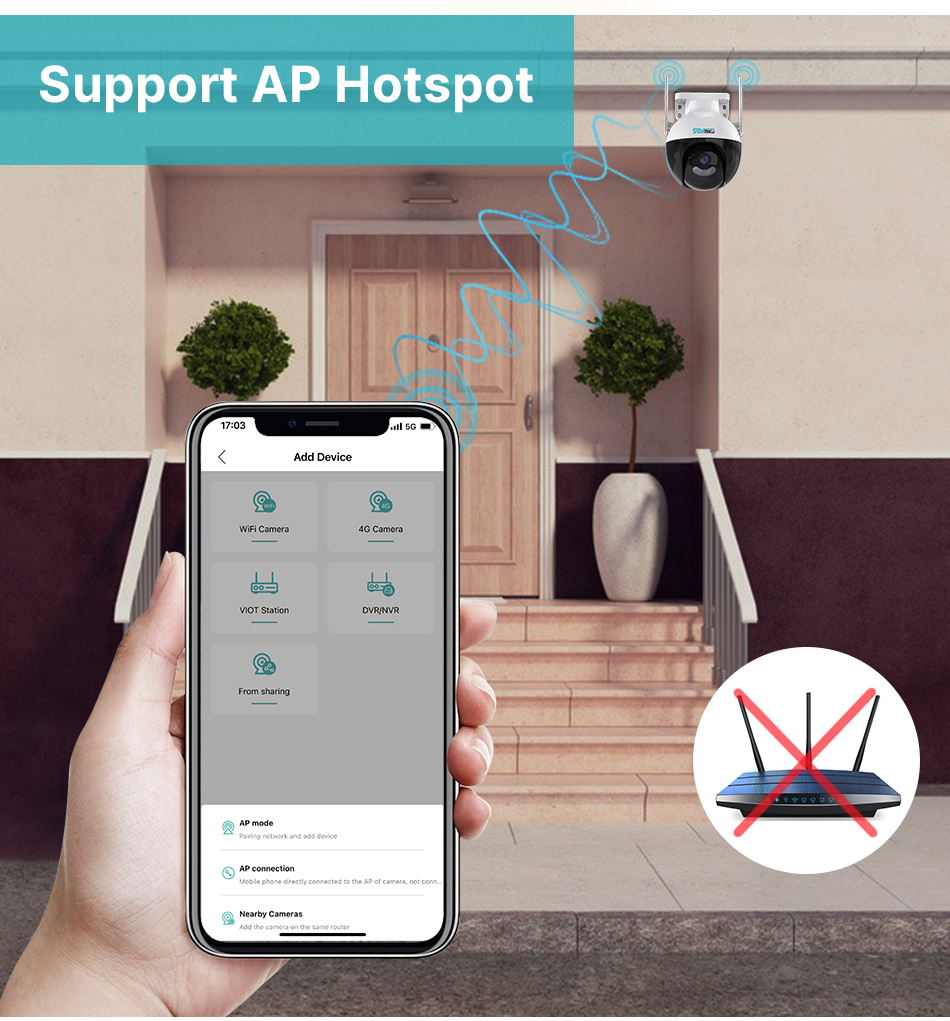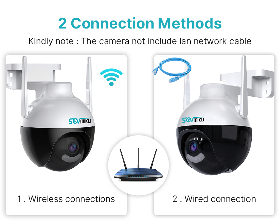 ● Проводное подключение: камера с портом LAN RJ45, вы также можете подключить камеру с помощью сетевого кабеля (когда у вас нет Wi-Fi);