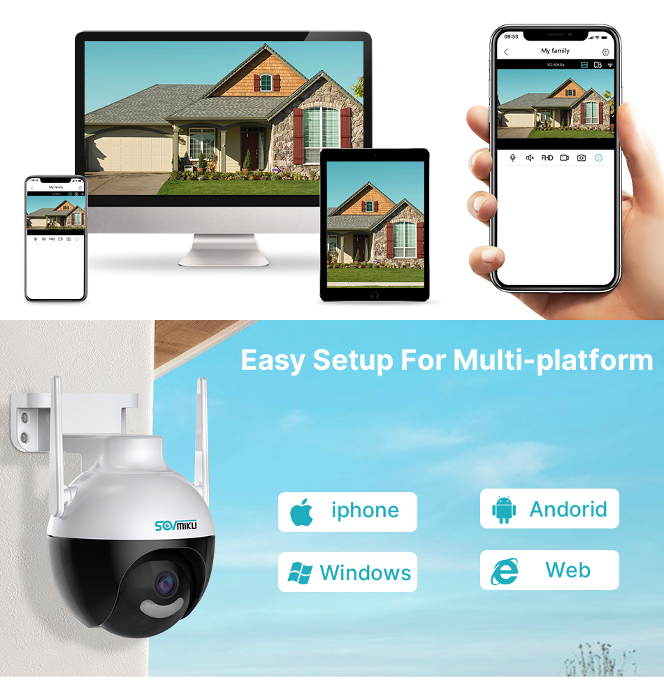 Корпус камеры изготовлен из высококачественного АБС-пластика, который является водонепроницаемым, солнцезащитным и пыленепроницаемым. Он подходит для любой среды.