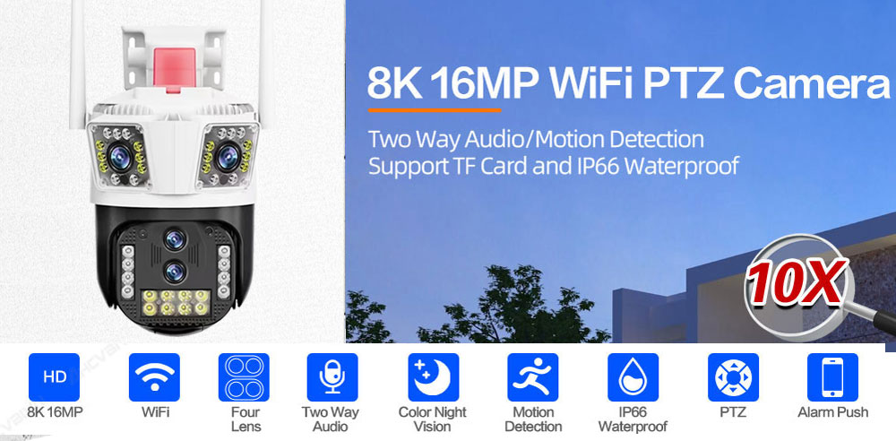 IP-камера видеонаблюдения, 16 Мп, 4K, Wi-Fi, 10X зум, тройной экран