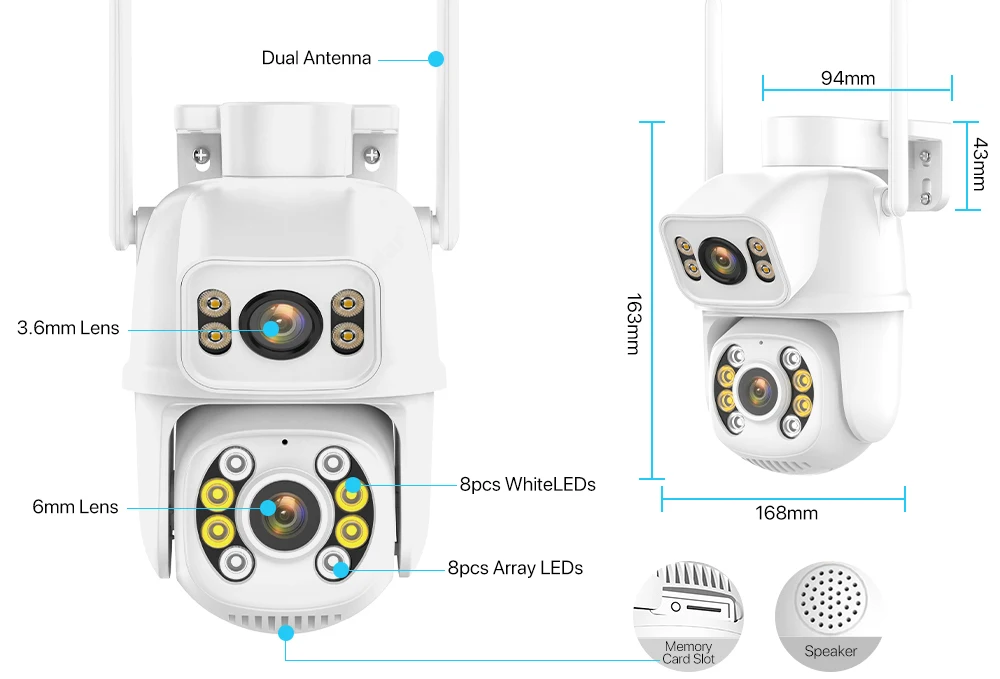 * HD 8MP / 4MP / 1080P HD Resoluton для опции; Опции 1080P/4MP имеют ОДИН объектив, опция 8MP имеет двойной объектив;