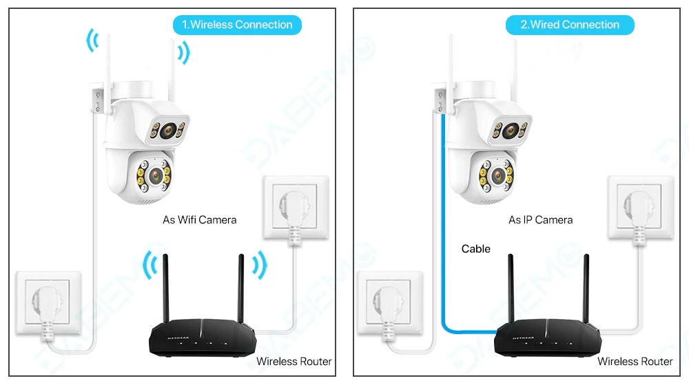 Иногда у вас может быть только один способ подключения камеры. Не волнуйтесь, эта камера поддерживает Кабельное и Wi-Fi соединение.