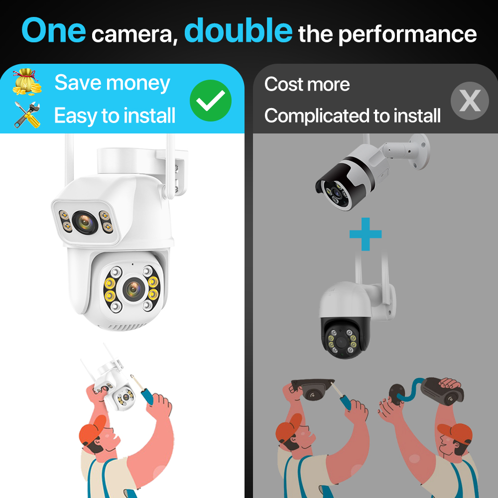 -С помощью всего одной камеры вы можете наслаждаться эффектом мониторинга в реальном времени нескольких камер. Вам не нужно заказывать другие камеры для просмотра большего количества изображений, что может сэкономить деньги.