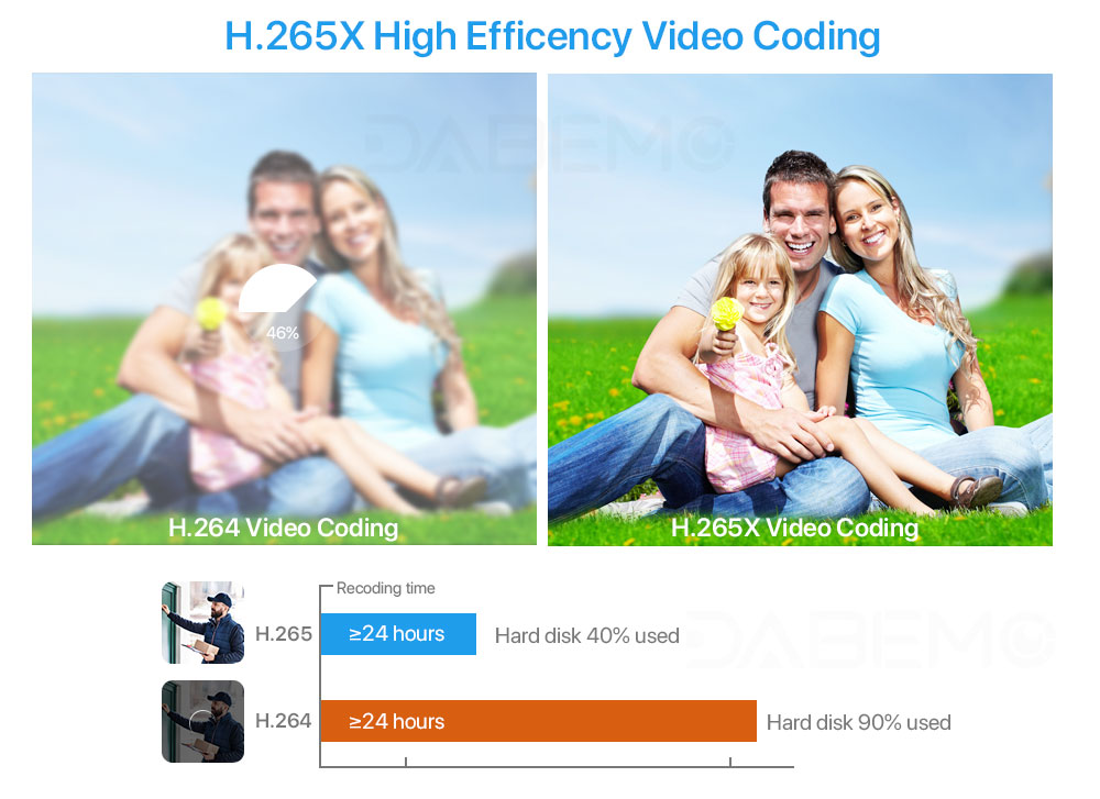 * H.264/H.264 +/H.265X новый дизайн хранилища, хранилище для карт TF и Облачное хранилище ниже, стабильнее и долговечнее;