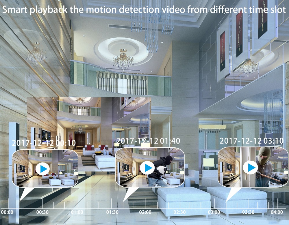 Доступно интеллектуальное воспроизведение с настраиваемой областью поиска. Вы сэкономите много времени на проверке воспроизведения, пропуская неважные видео.