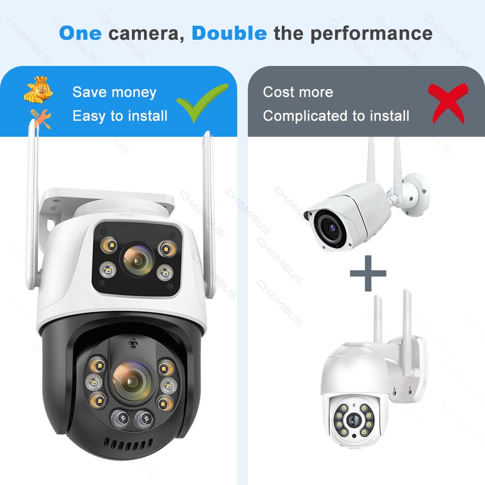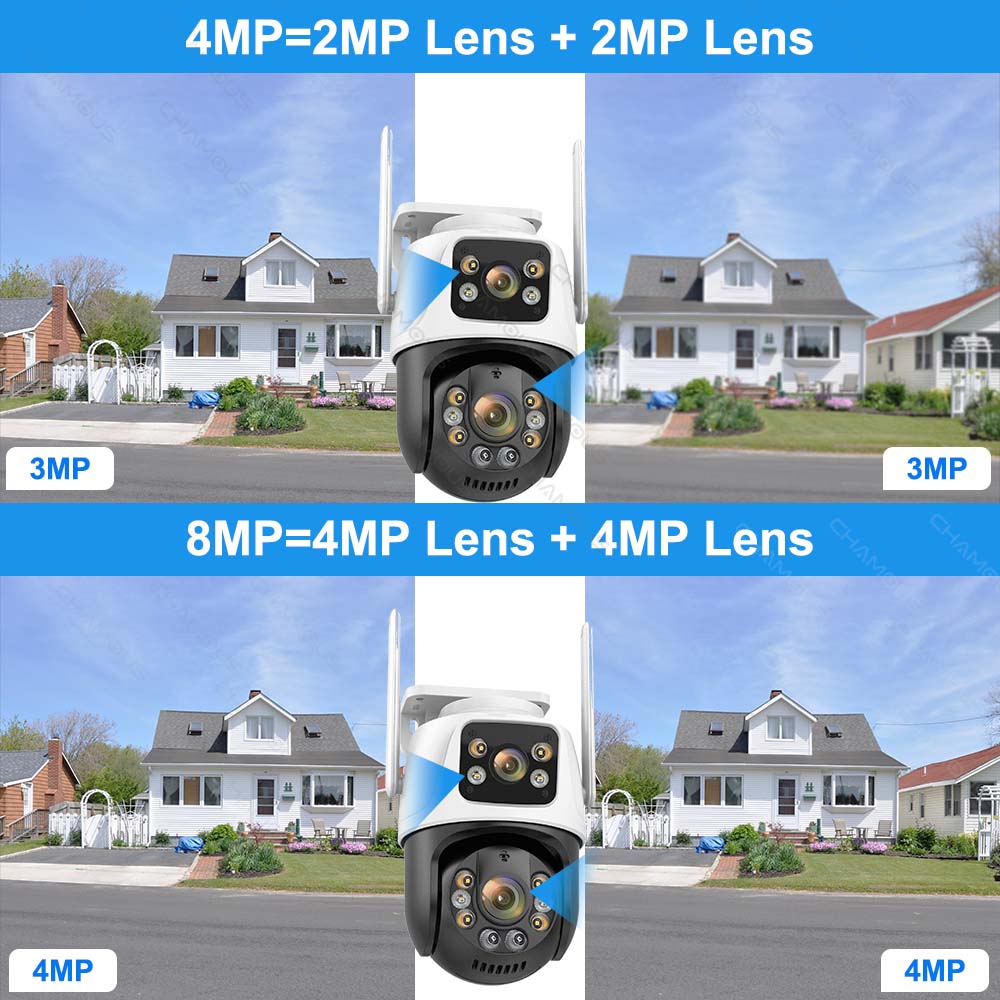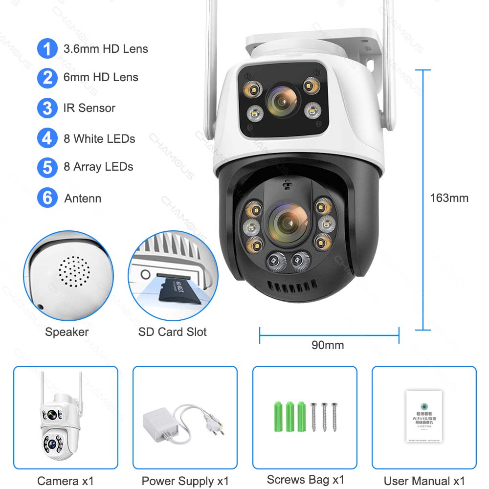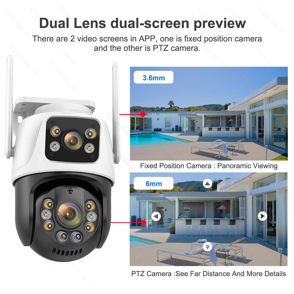 8MP WiFi-камера Наружная двухэкранная PTZ IP-камера 4MP Защита безопасности CCTV Видеоуличная камера ICsee P2P