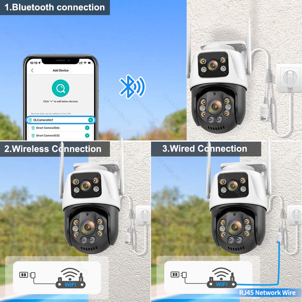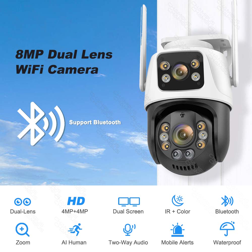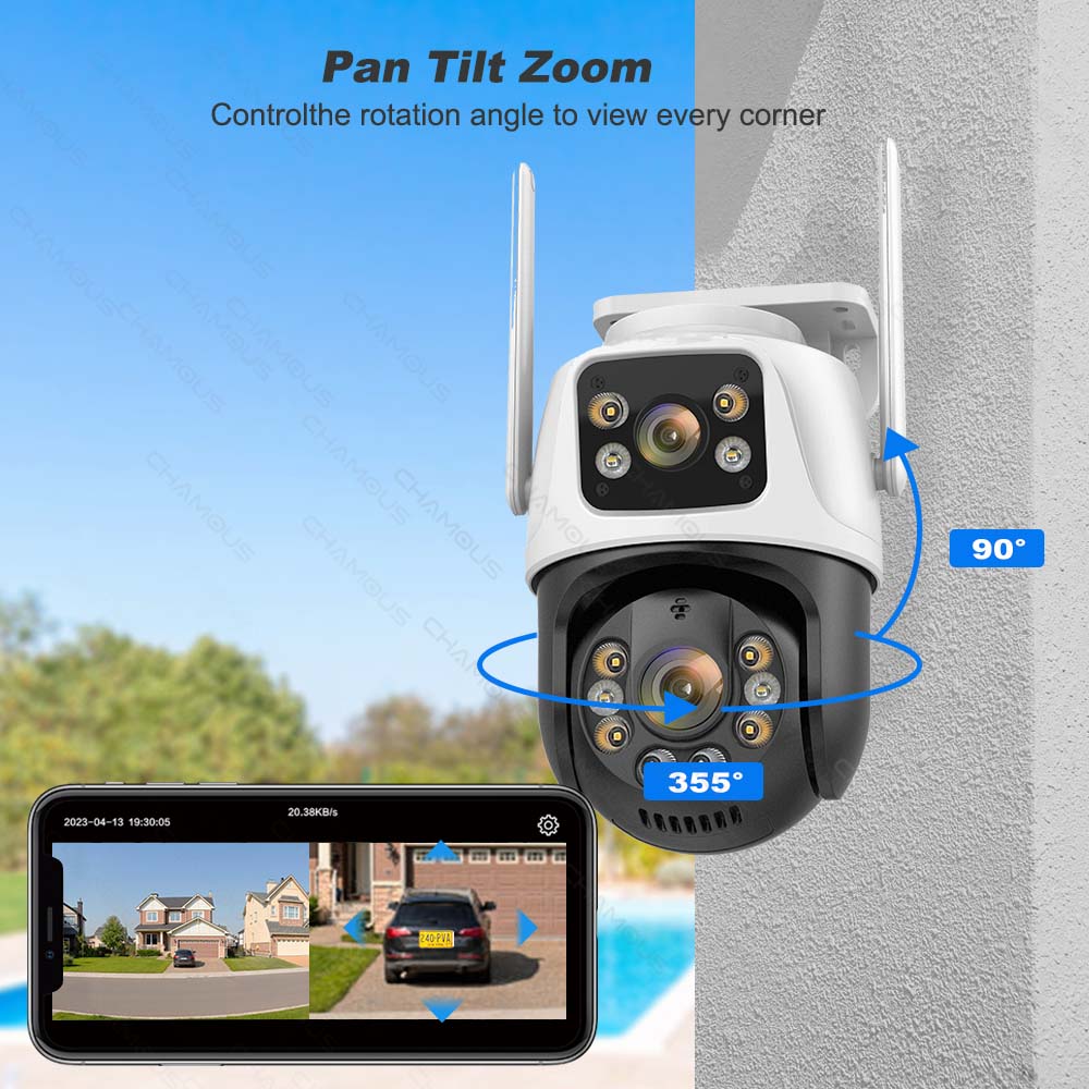 9-мегапиксельная WiFi-камера для улицы, двойной экран с тремя объективами, 8-кратный зум, камера видеонаблюдения, 4K 6MP, видеонаблюдение, PTZ CCTV,ICsee, Alexa,ONVF NVR, соединение Bluetooth, IP-камера наблюдения WiFi
