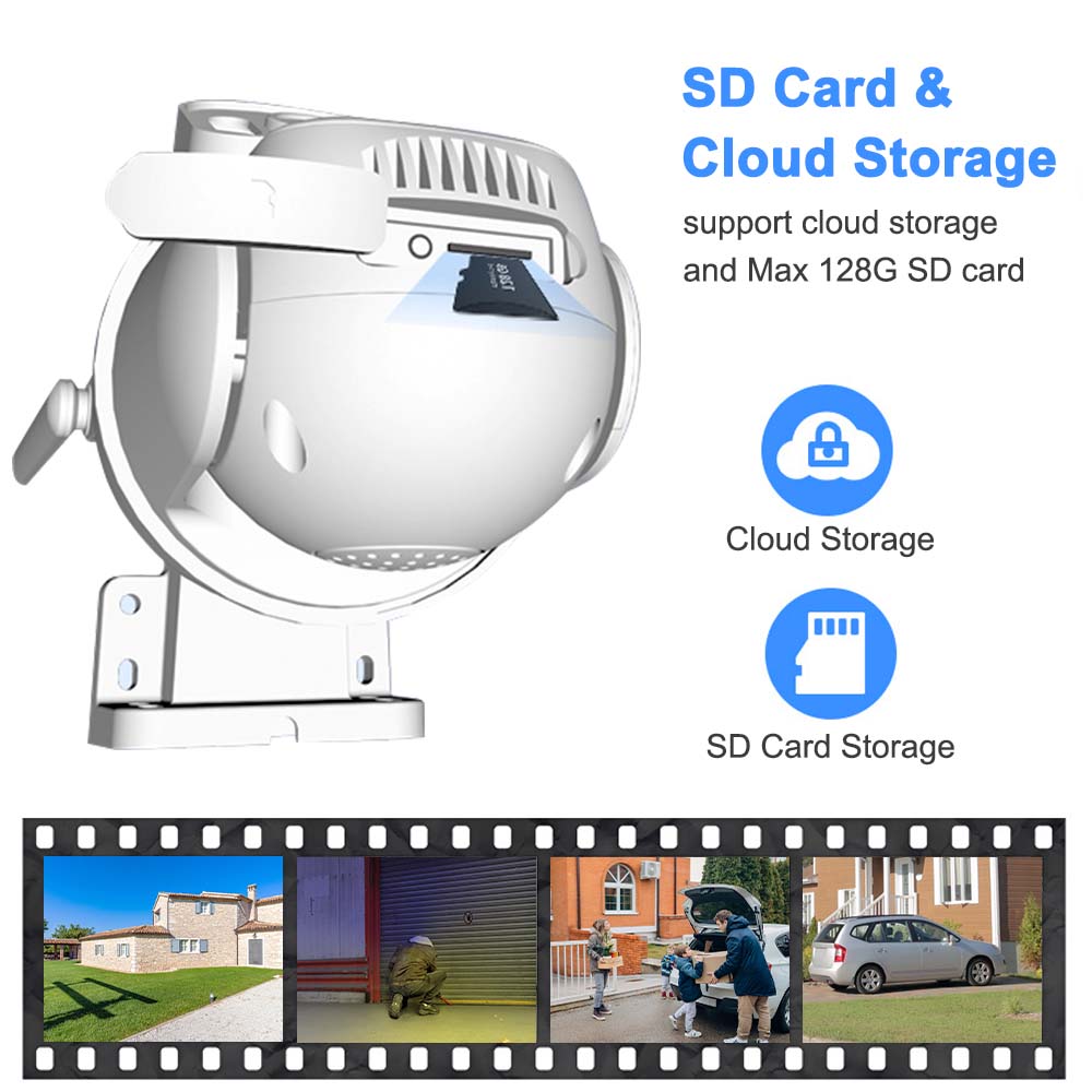 * PTZ-камера также поддерживает зашифрованное защищенное Облачное хранилище, защищает запись в облаке от любой потери отснятого материала в результате повреждения, такого как кража камеры видеонаблюдения.