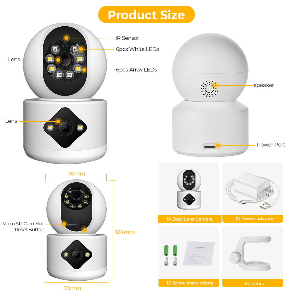 2,4 ГГц WiFi / 4MP HD/двойной объектив/двойной экран/автоматическое отслеживание/ИК-ночное видение/Облачное хранилище