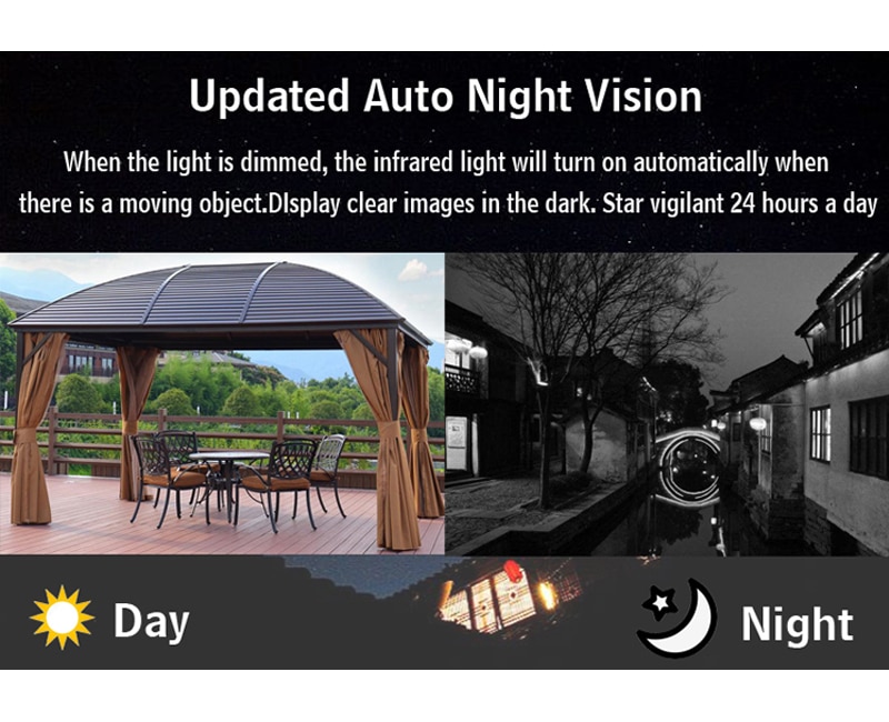 Смотрите все в деталях с истинным HD. Получите более четкие и резкие изображения/видео, чем другие IP-камеры Wi-Fi. Благодаря исключительному ночному видению вы можете четко видеть даже в темноте. Днем и ночью, на улице или в помещении, JIENUO не перестанет защищать вас. Вы также можете проверить, снится ли вашему ребенку сладкий сон ночью, на своем мобильном телефоне.