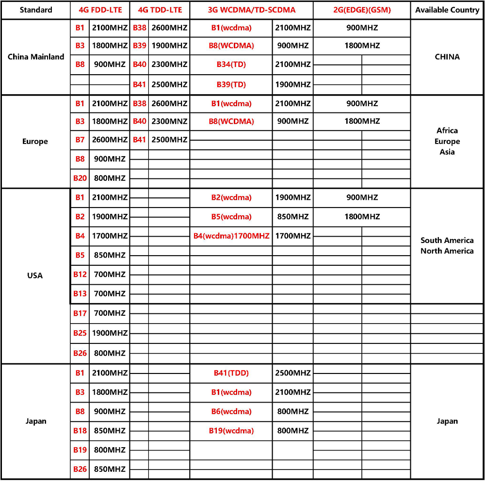 Вам нужно проверить, находится ли ваш перевозчик в пределах следующих диапазонов частот