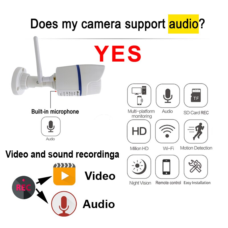 Встроенный высококачественный микрофон, вы можете слышать что угодно со стороны камеры.