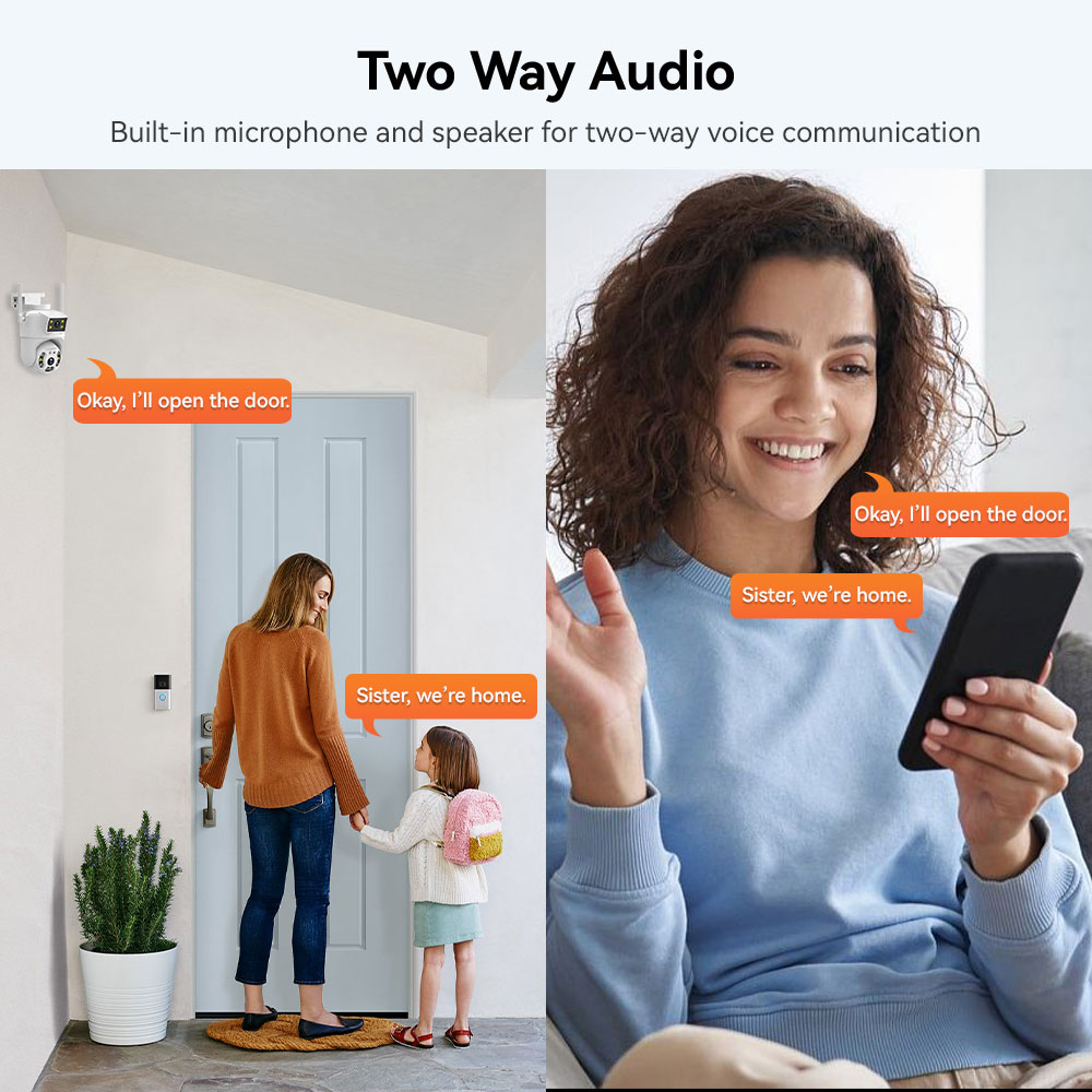 Встроенный микрофон и динамик поддерживают видео в реальном времени, что позволяет разговаривать с посетителем в реальном времени, где бы вы ни находились.