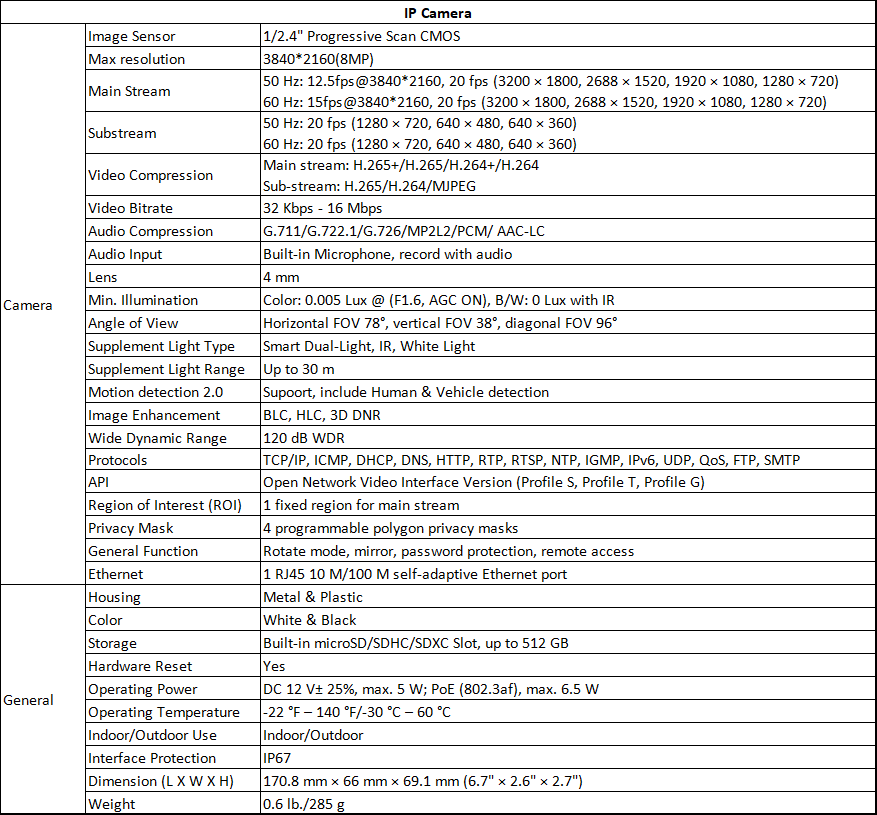 <span class="SnowProductCharacteristics_SnowProductCharacteristicsItem__titleContent__534v9">features</span> 8MP IR Network Turret Camera
