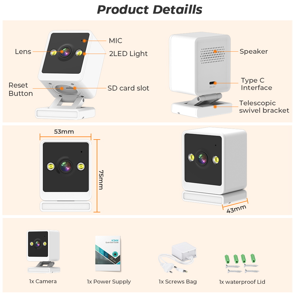 Эта камера встроена в слот для карт TF, поддерживает карту TF до 128 ГБ и поддерживает Облачное хранилище, что означает, что вы можете сохранять видео для последующего просмотра.