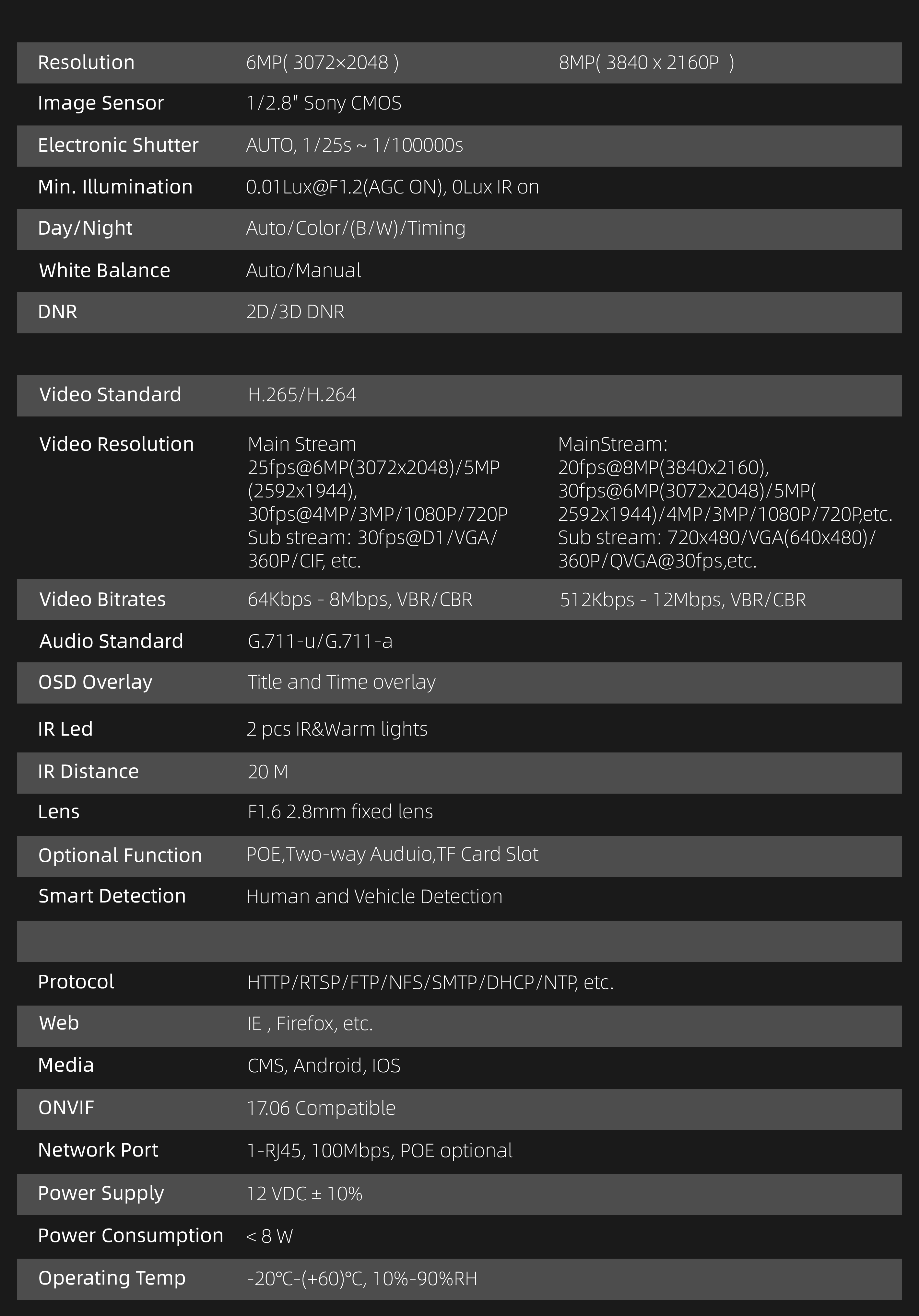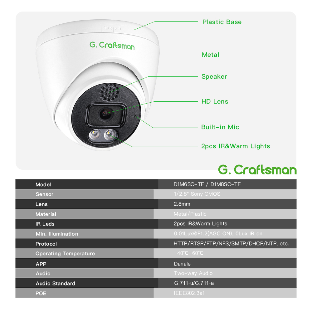 IP-камера видеонаблюдения G.Craftsman SONY 6MP 8MP аудио TF слот для карты POE