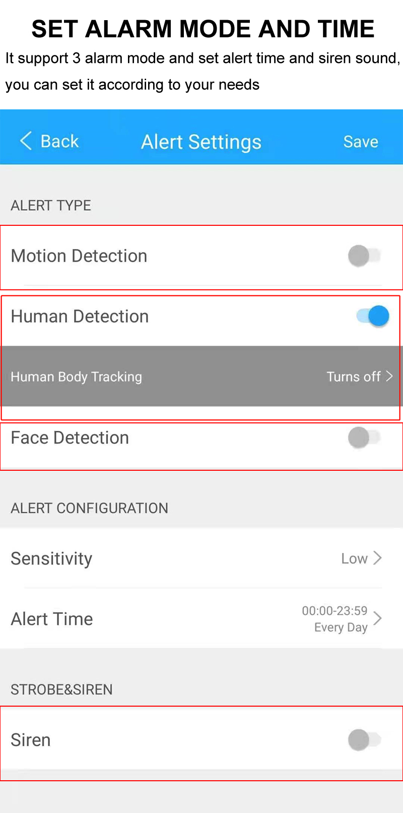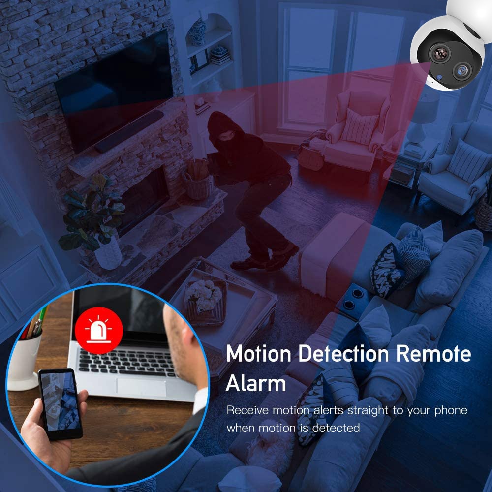 【Интеллектуальное Обнаружение движения 】при Обнаружении Движения Камера незамедлительно отправит уведомление и записывает видео на ваш телефон или в облако. Вы можете войти в приложение, чтобы увидеть, что происходит в режиме реального времени, и никогда не беспокоиться о том, что-то важное, вы можете настроить тело человека или лицо или режим тревоги движения в соответствии с вашими потребностями.