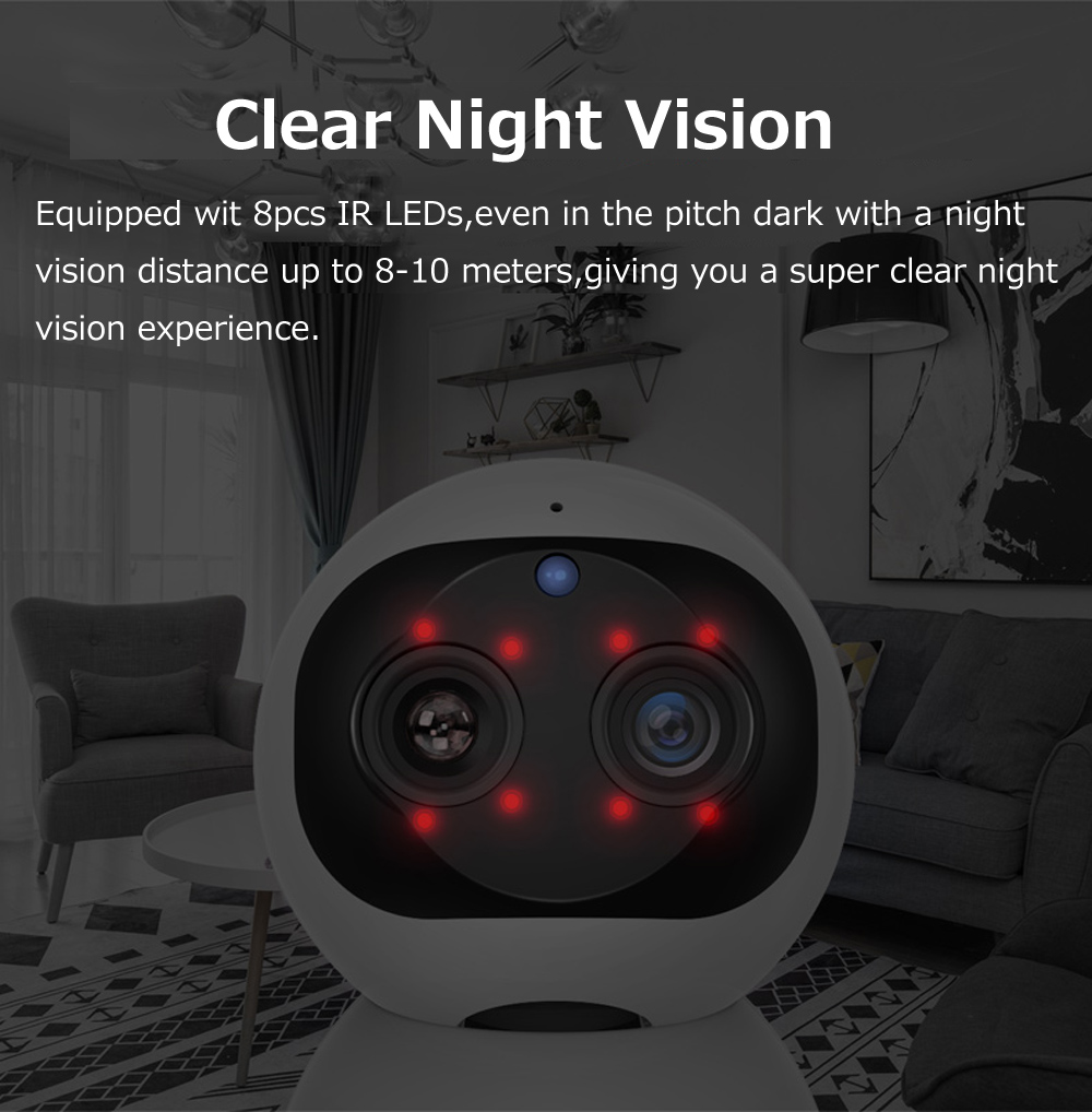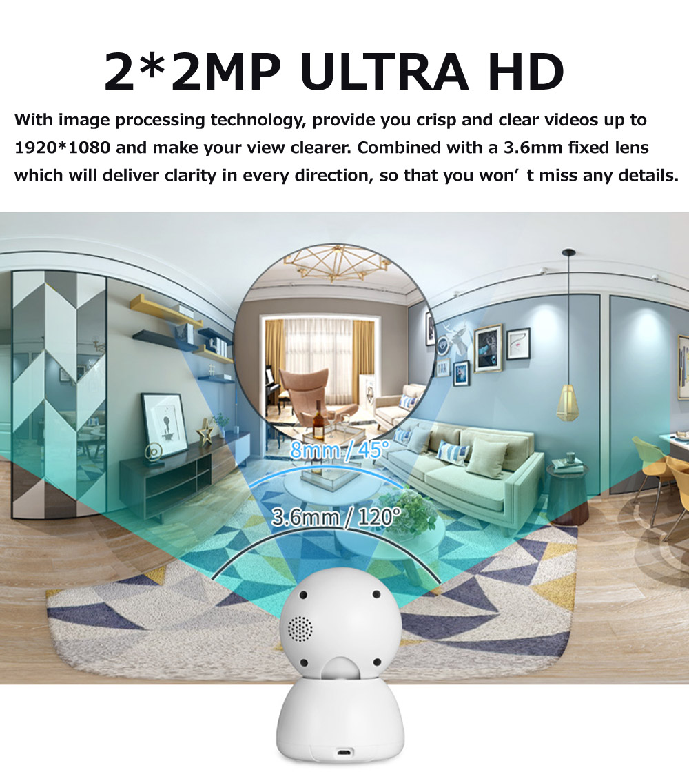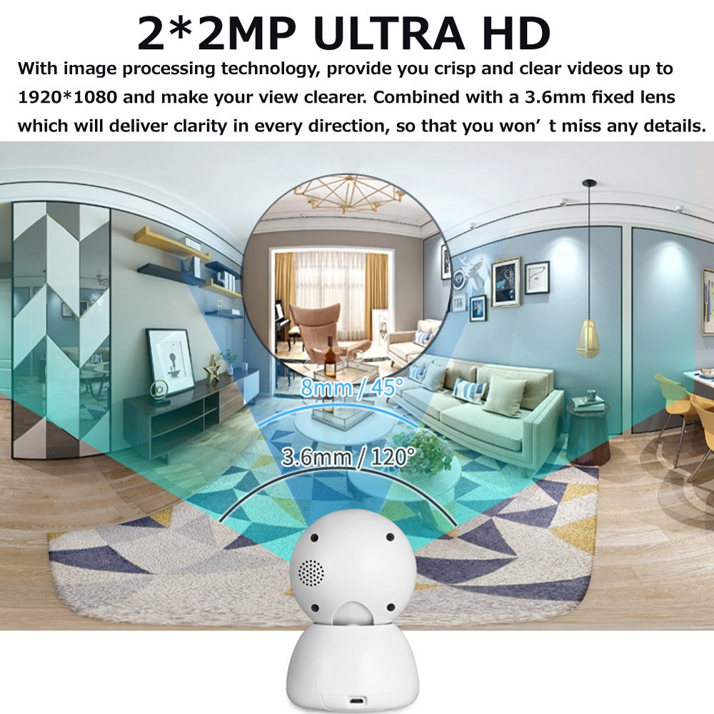 【 1080P HD WiFi ip-камера 】предназначена для внутренней безопасности с высоким разрешением 2*1080P, все захваченные этой камерой будут представлены вам с помощью бесплатных видео. (Примечание: камера работает только с Wi-Fi 2,4G, не поддерживает 5G сети).