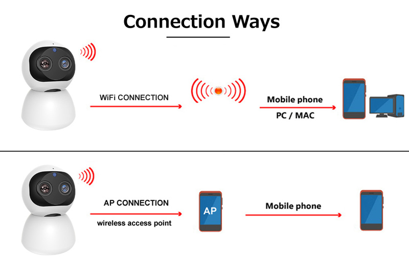 【Поддержка режима подключения AP 】если ваша сеть выключена, камера имеет встроенный AP wifi, вы все равно можете подключиться к AP wifi для работы с телефоном в течение 10 метров.