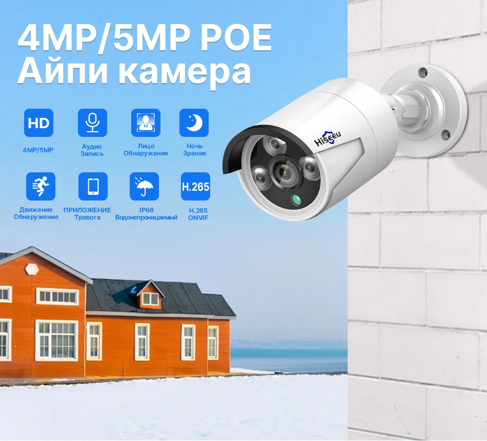 IP-камера видеонаблюдения Hiseeu, 4/5 MP, POE, H.265, модели и комплектация в ассортименте