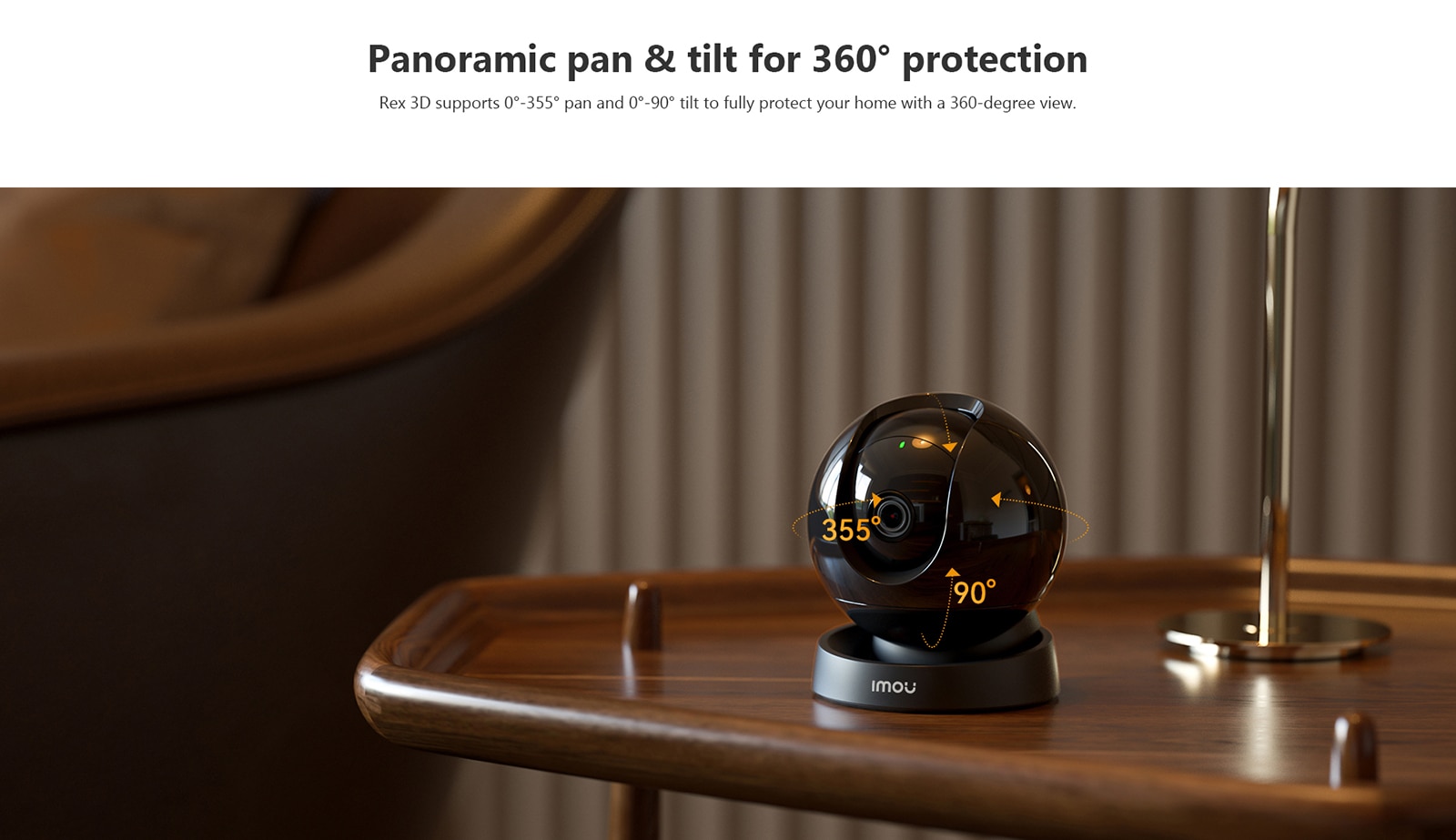 Rex 3D поддерживает панорамирование на 0 °-355 ° и наклон 0 °-90 °, чтобы полностью защитить ваш дом с обзором на 360 градусов.