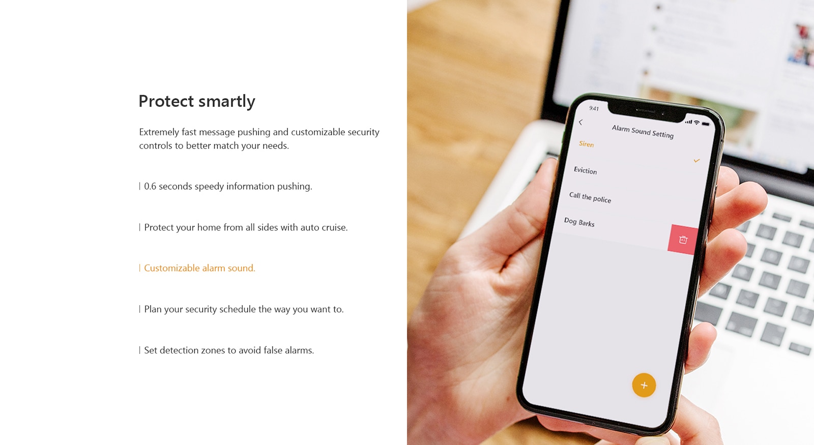 * Аномальная звуковая сигнализация:Отправляет оповещения на ваш смартфон, когда