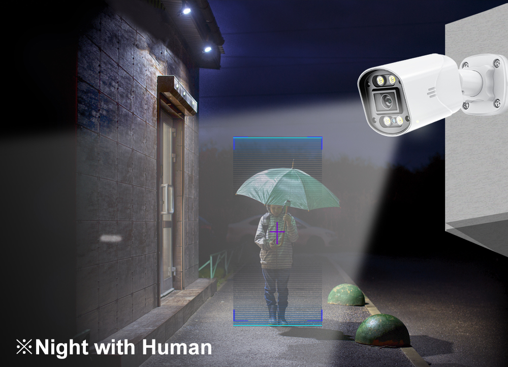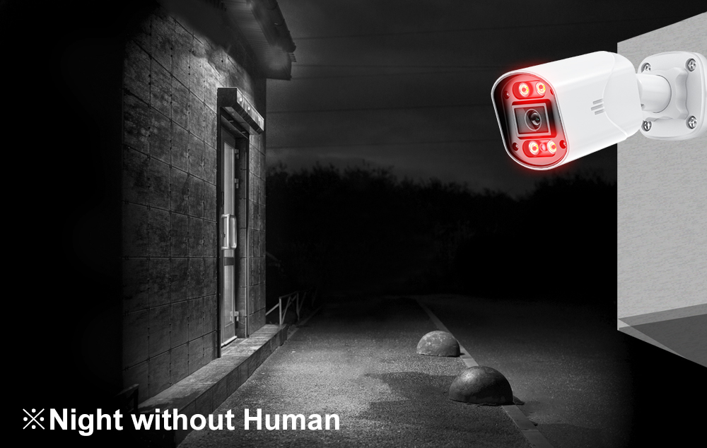 Когда ночью инфракрасное излучение работает, но камера обнаруживает человека, в это время будет работать белый светодиод, и он закроется после того, как больше не обнаружит человека.