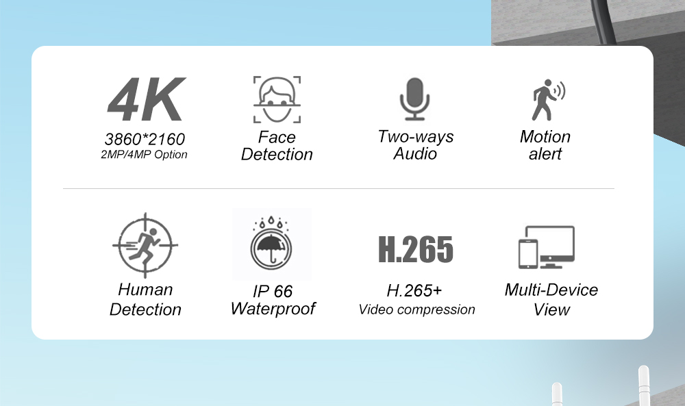 Мы предоставляем 4MP, 5MP и 8MP три типа пикселей на выбор, и вы можете выбрать соответствующий продукт в соответствии с вашими потребностями. Формат HEVC H.265