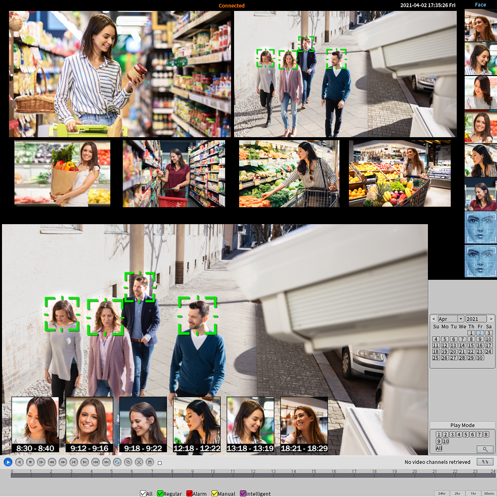 Вы можете создавать настройки обнаружения движения для камеры, включая обнаружение человеческого тела, обнаружение пересекающихся линий, обнаружение вторжений и определение конкретных регионов.Интеллектуальное распознавание лица AI/распознавание лица/воспроизведение лица
