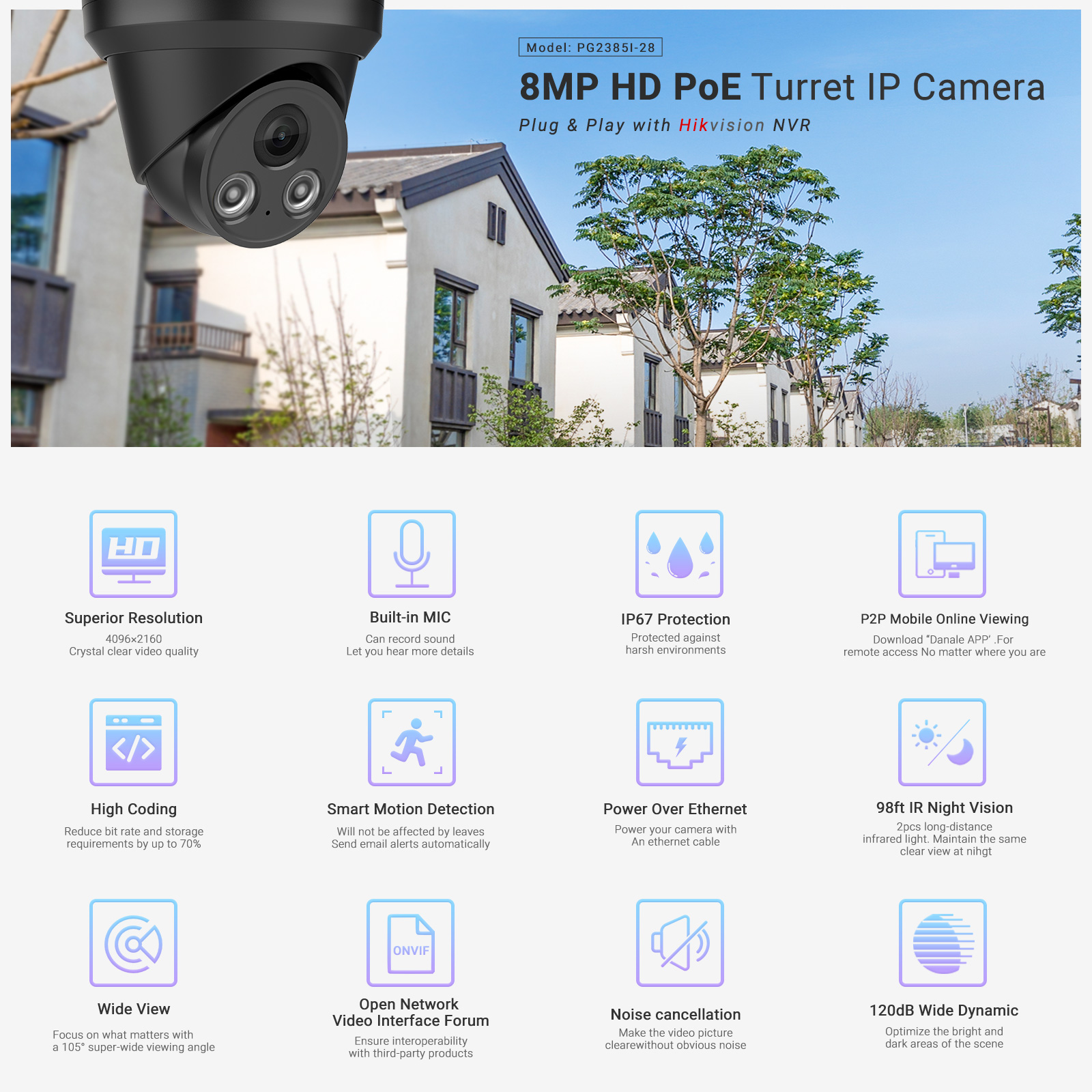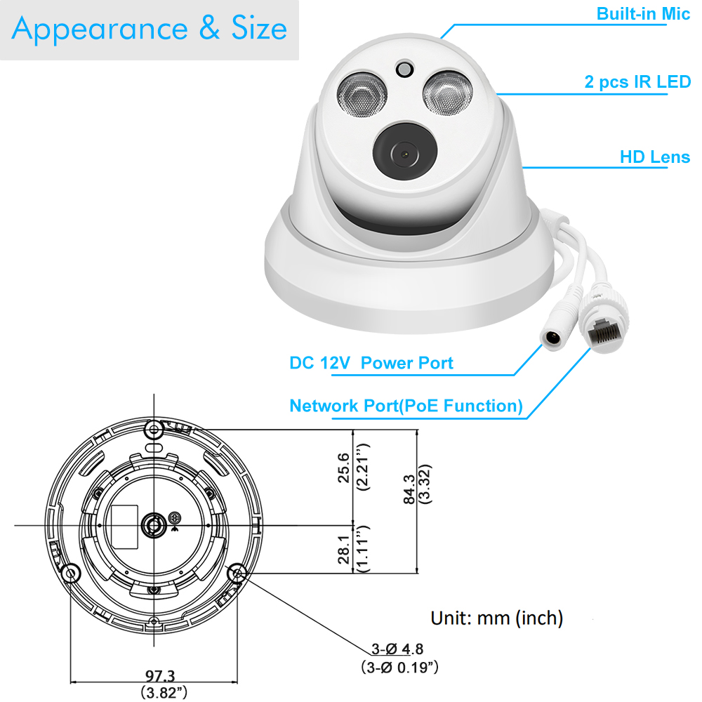 > IP-камера, совместимая с HIK, также поддерживает ONVIF, поэтому она подходит для Сетевых Видеорегистраторов многих брендов (таких как hikvison, DH NVR и т. Д.)